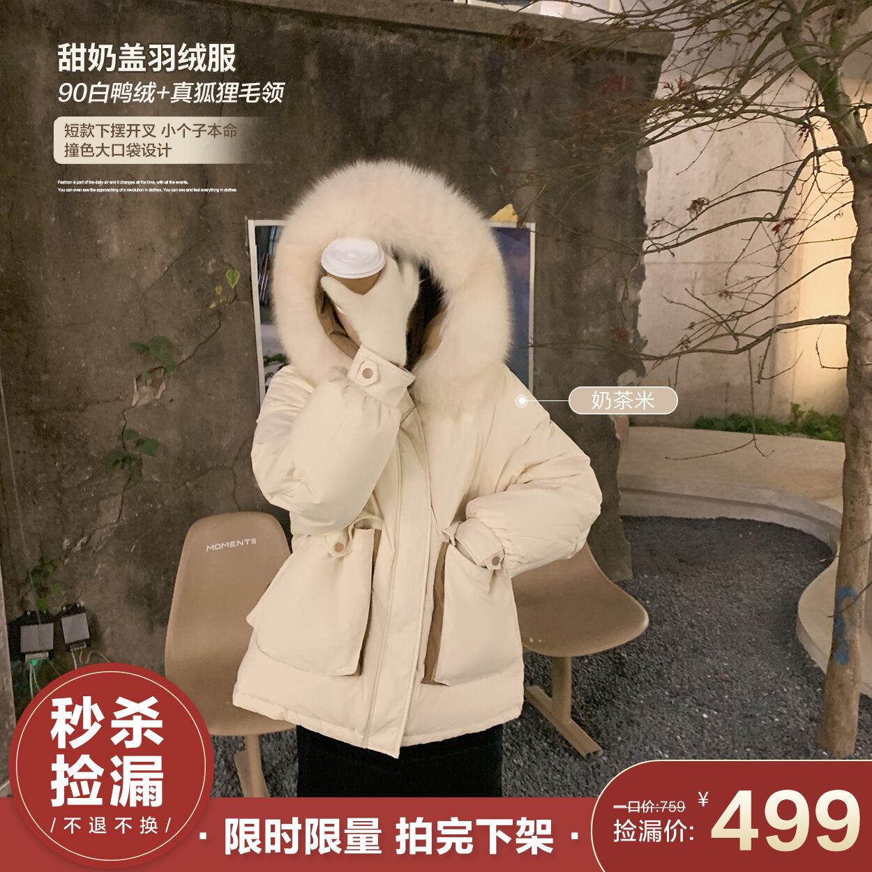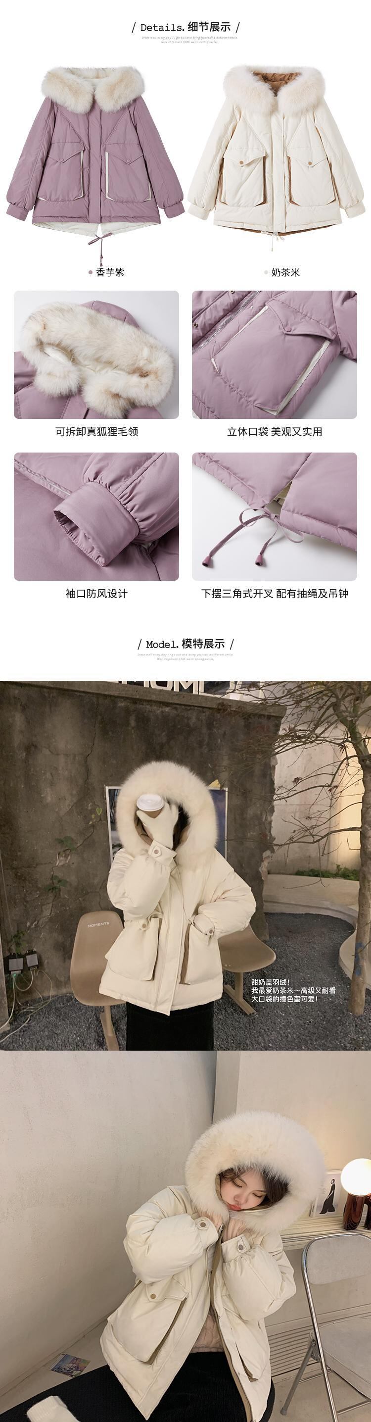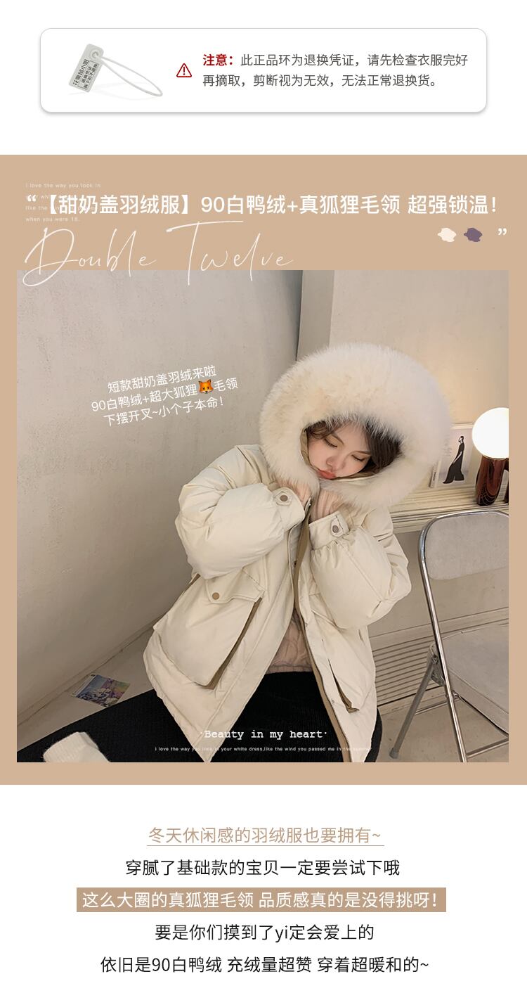 ミスシマリススウィートミルクカバーショートダウンジャケット90ホワイトダックダウンフォックスファーカラーシックニングウォームウィンタージャケット missi95796603948