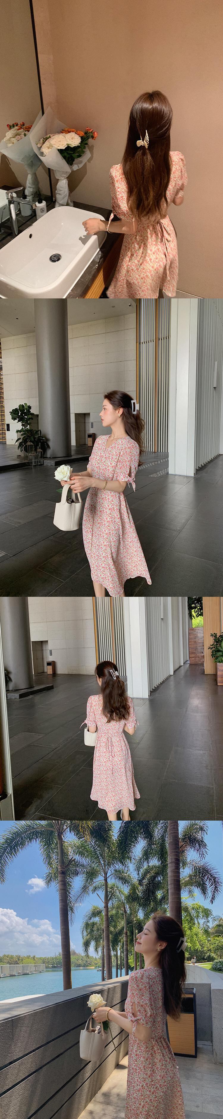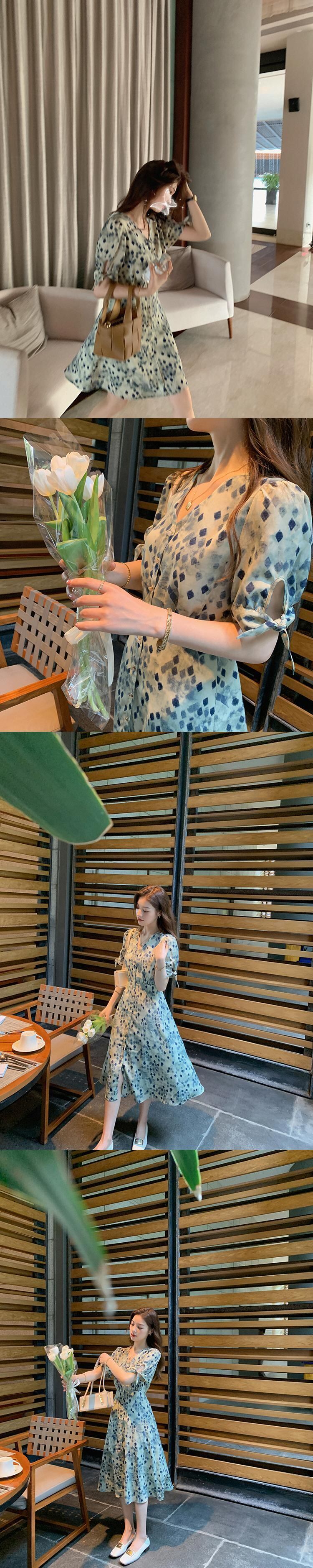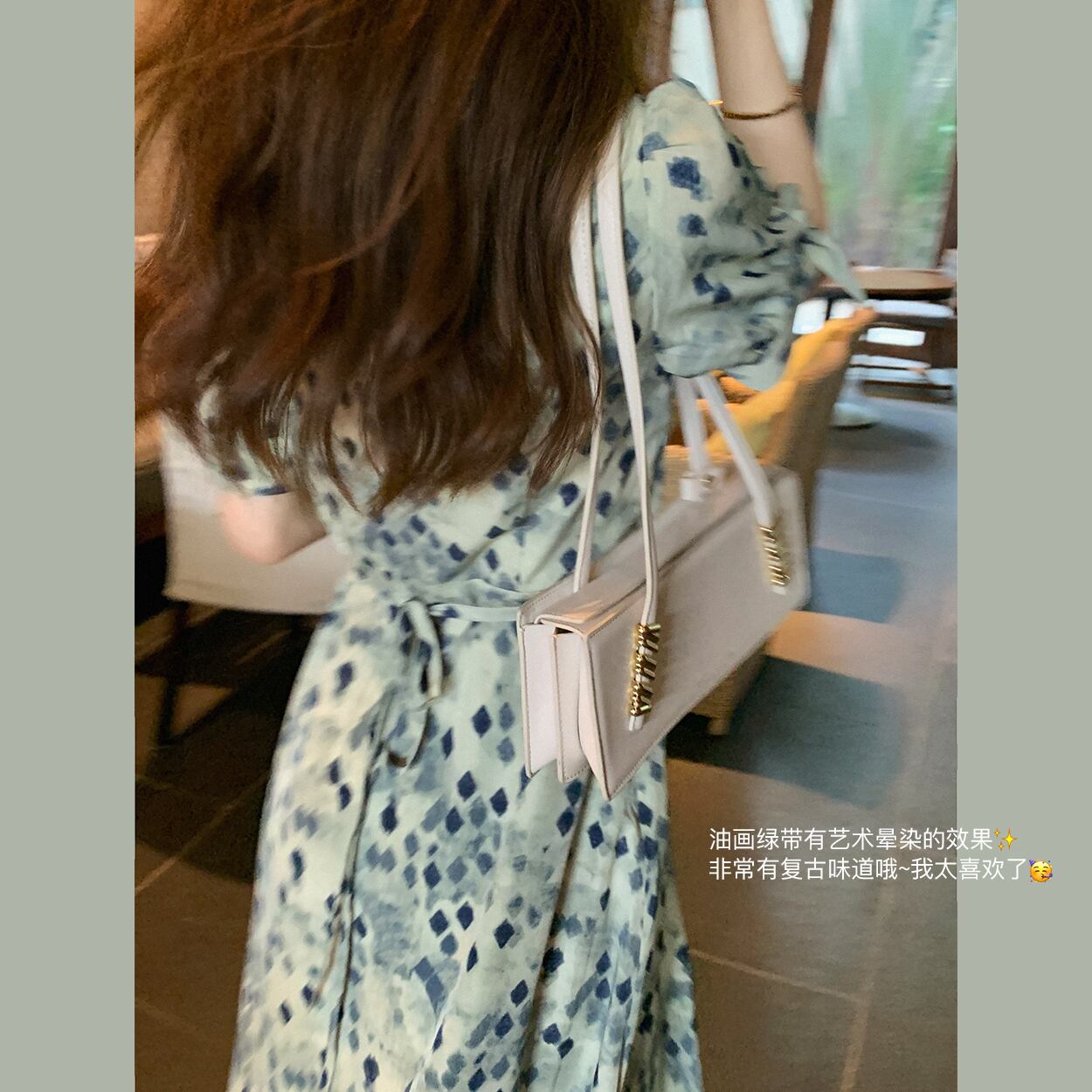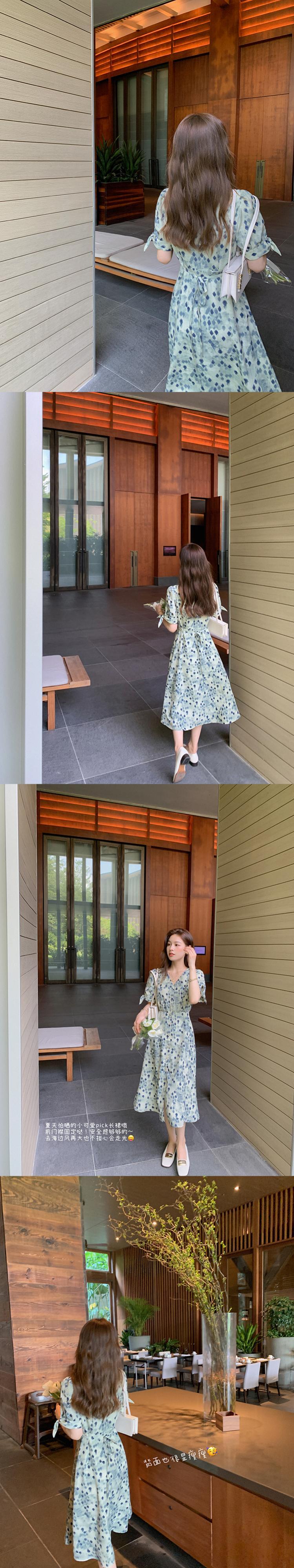 ミスチップマンクVネックフローラルドレス女性の夏のウエストスリミングショートスカート小さな半袖ロングスカート missi71357329503