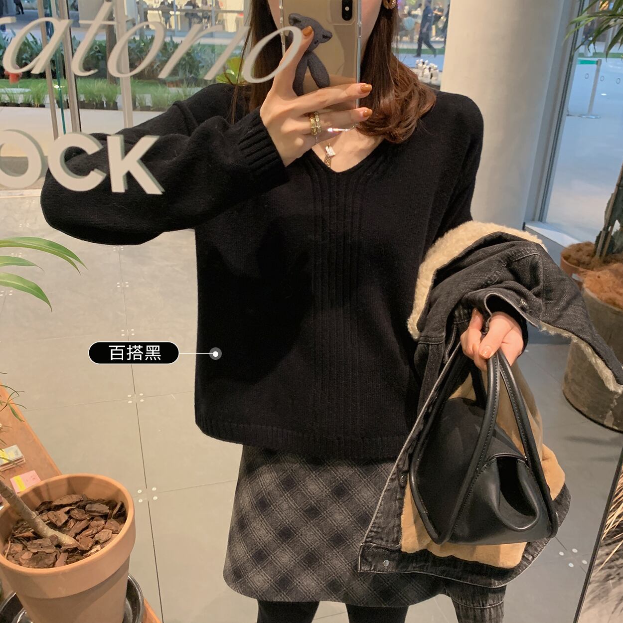 ミスシマリス100ピュアウールセーター2020ウィメンズVネックルーズでウエスタンスタイルのショートトップ missi85392752024