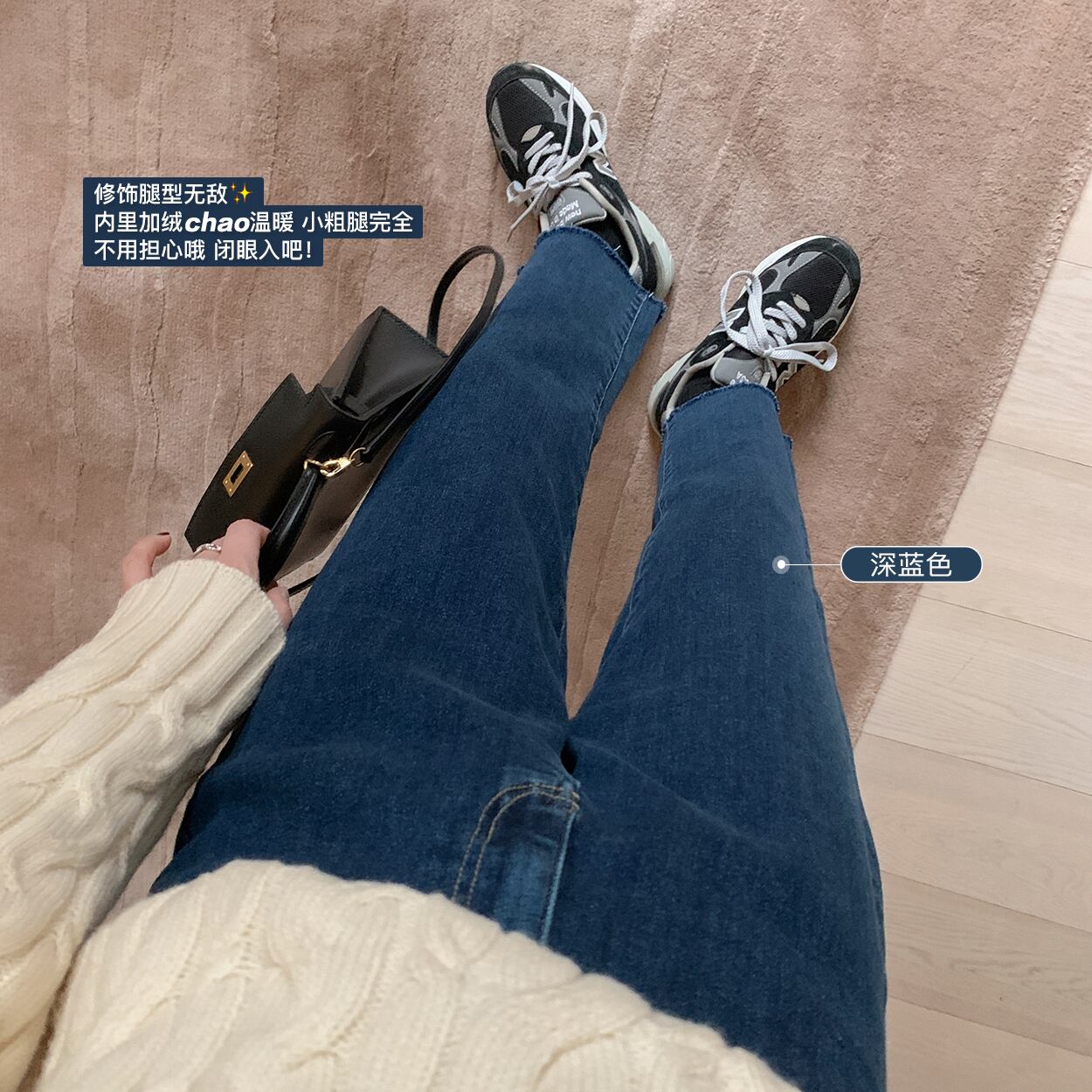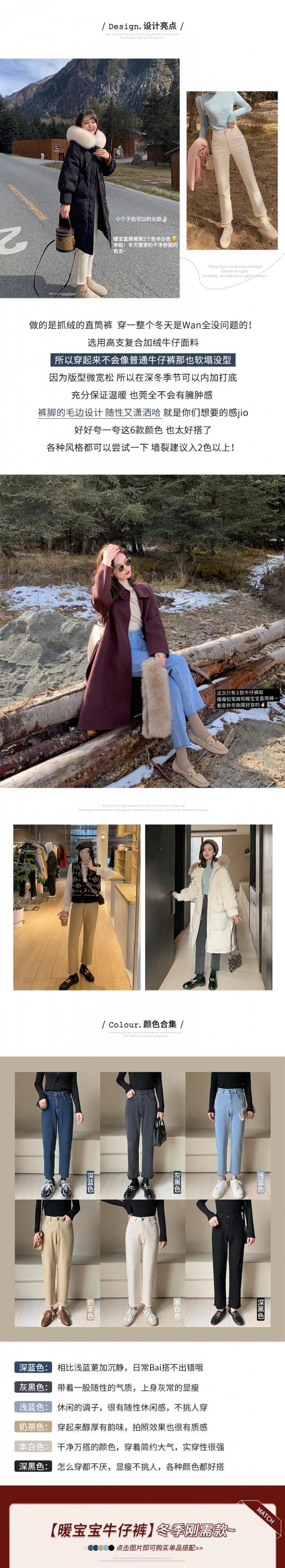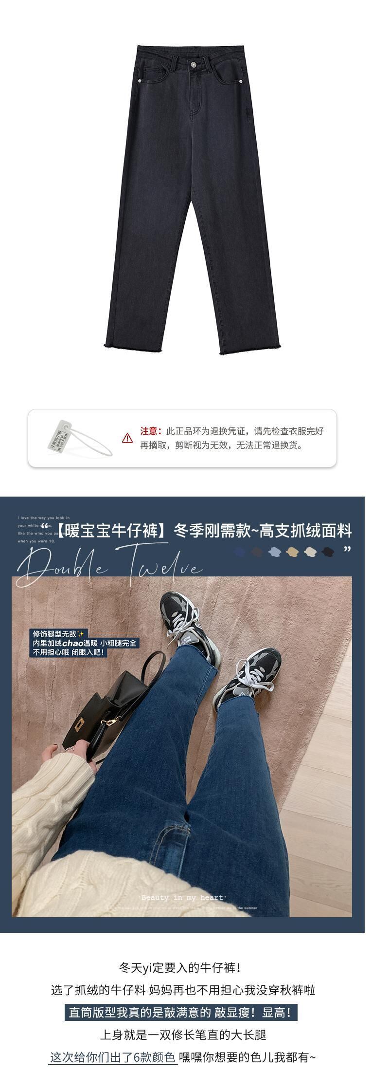ミスシマリスプラスベルベットジーンズレディース2020新しいハイウエストスリムストレートレッグ秋冬ウェアオールマッチパンツ missi12612636832