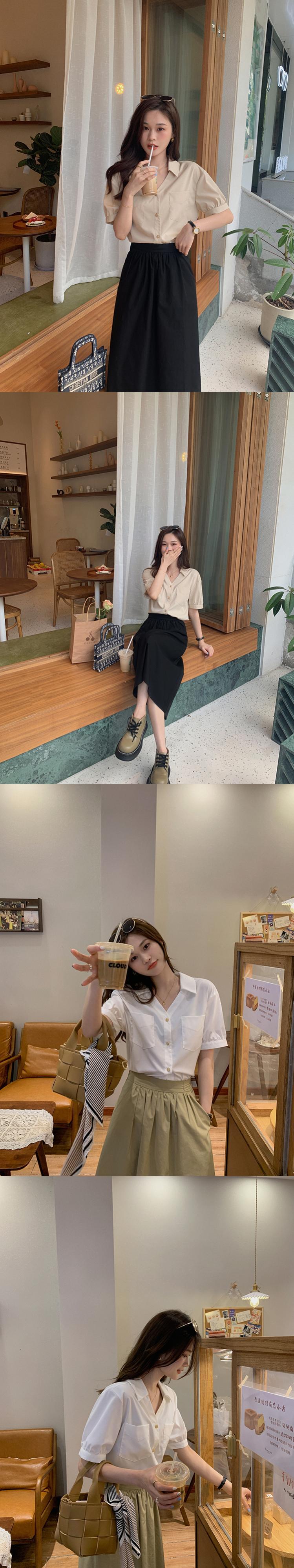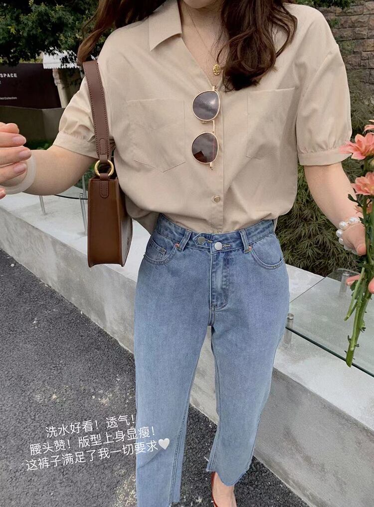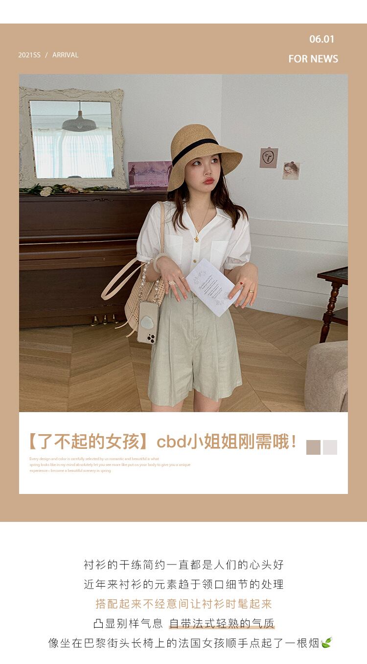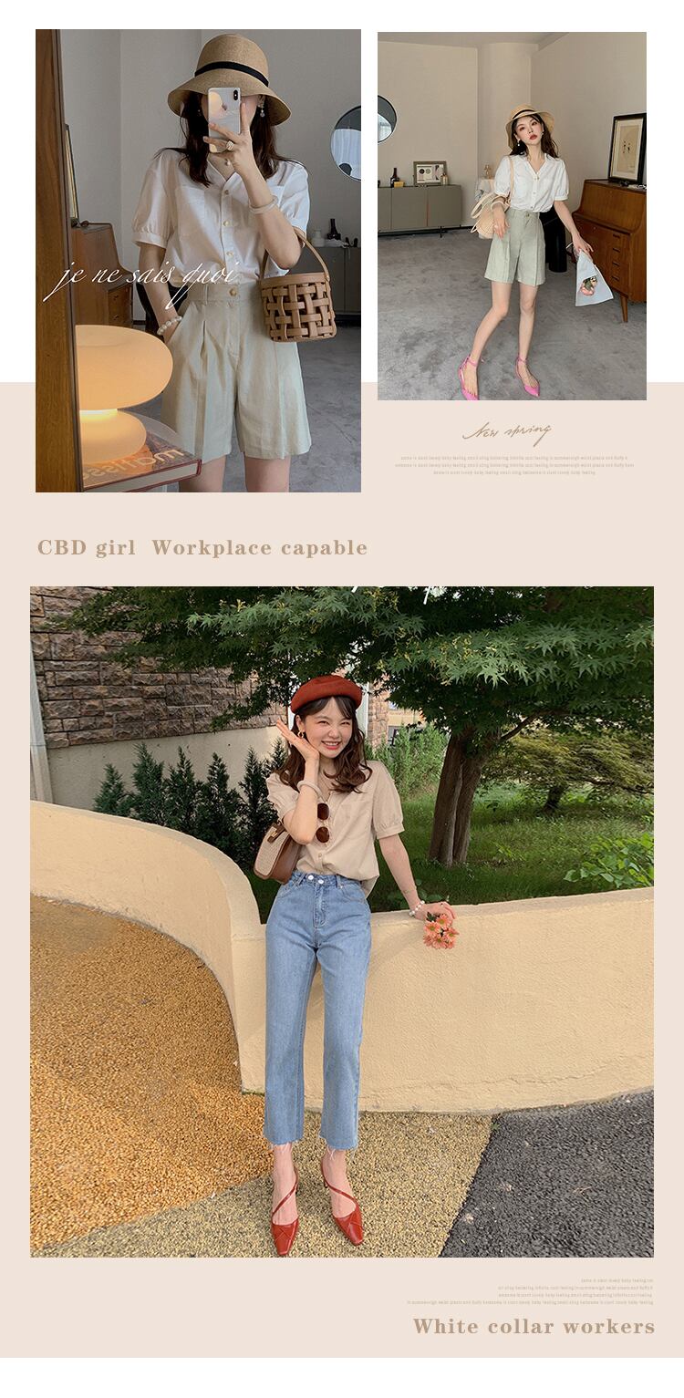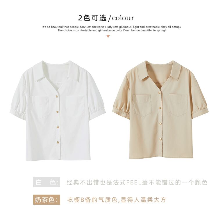 ミスシマリス【アメージングガール】フレンチスタイルの軽く調理した半袖シャツ女性夏薄Vネックブラウス missi1537142233