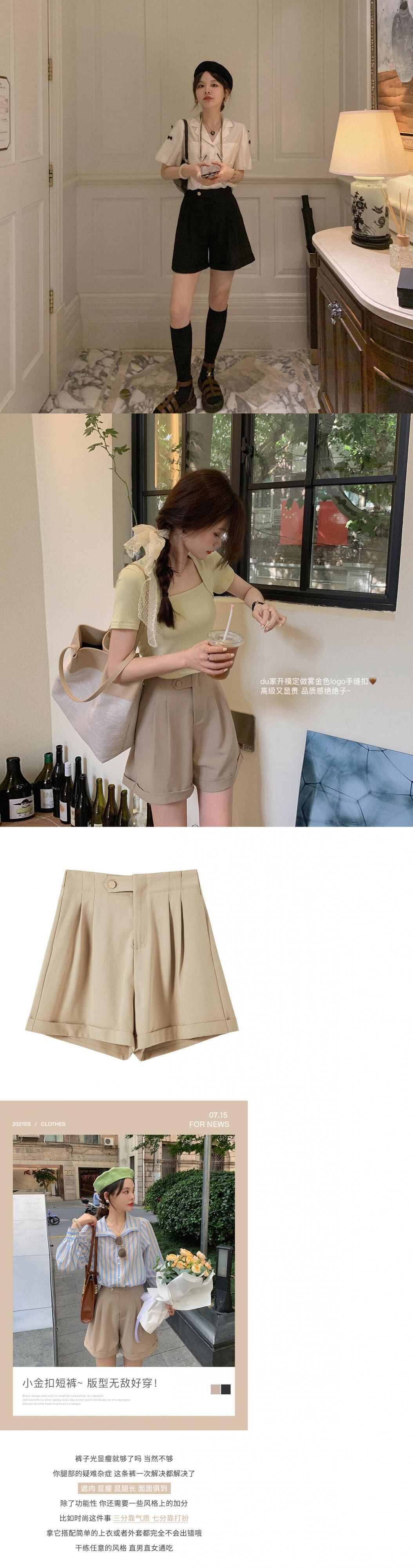 ミスチップマンク[スモールゴールデンボタンショーツ]カーキショーツレディースサマーシンパンツブラックウエストが薄かった missi21239649089