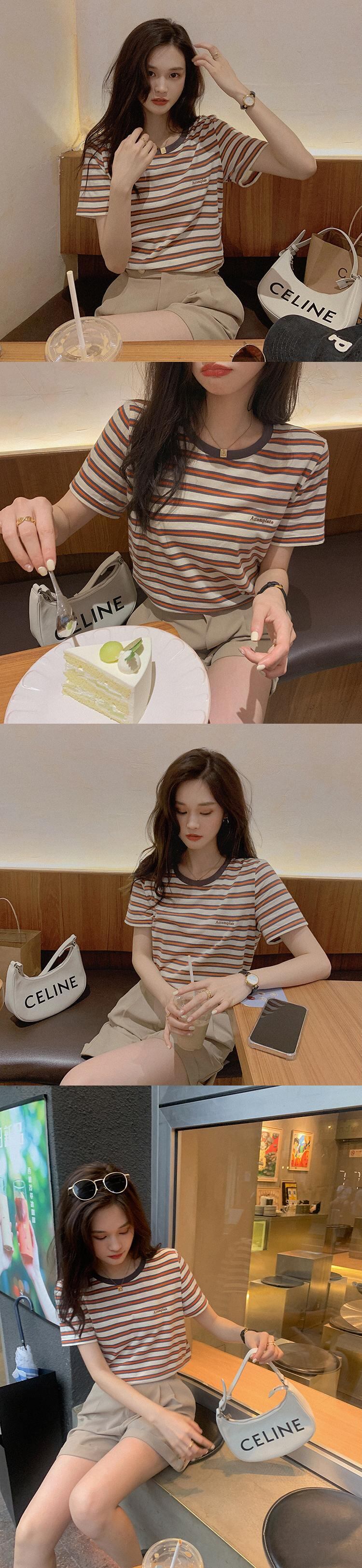 ミスシマリス【エンディングバトルT】レトロ対応半袖Tシャツサマーガールシンショートショートルースコットン missi68249550795