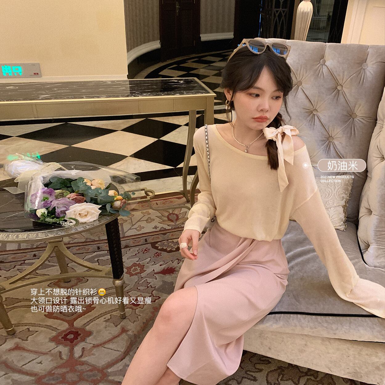 ミスシマリス[もち米t]テンセル半袖女子夏薄エアコンシャツクリーム優しい風セーター missi17196514346