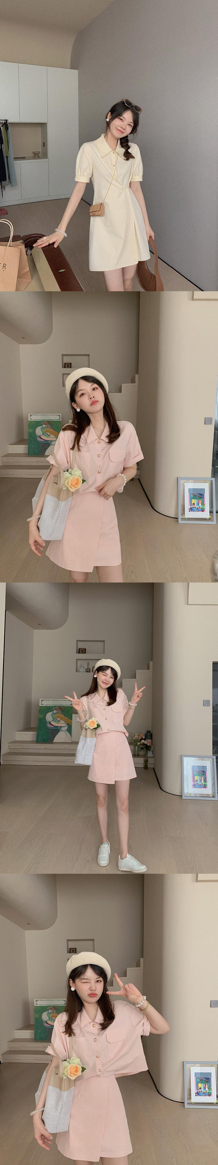 ミスチップマンクスモールシャツドレスサマーピンクポロカラースカート気質トップ/ハーフスカートスーツ missi83006456950