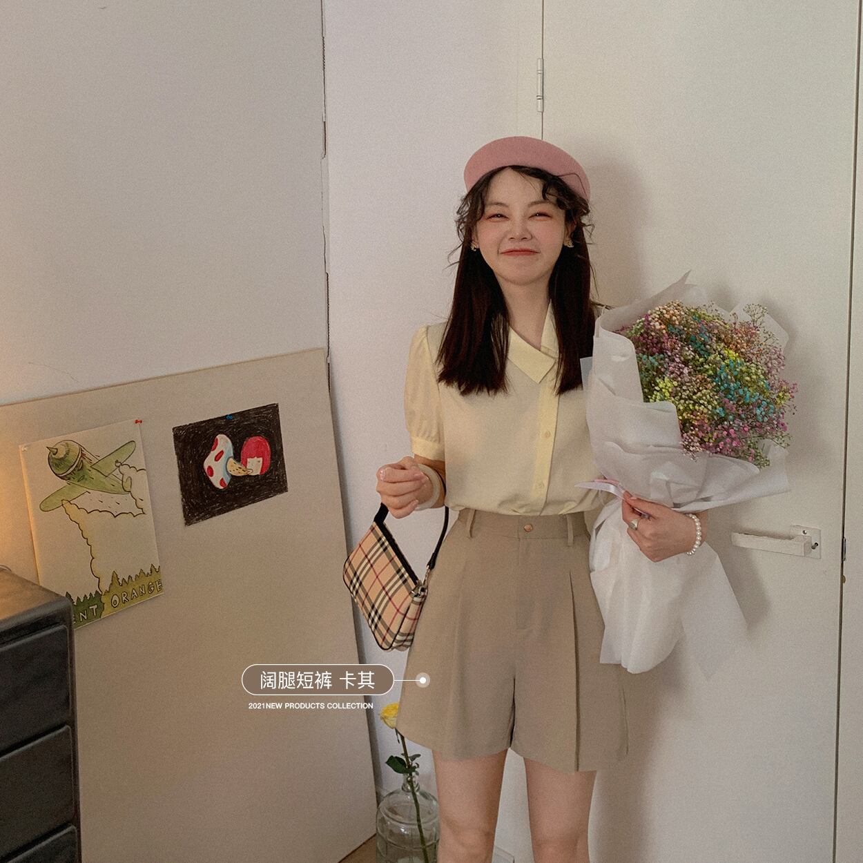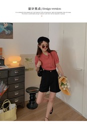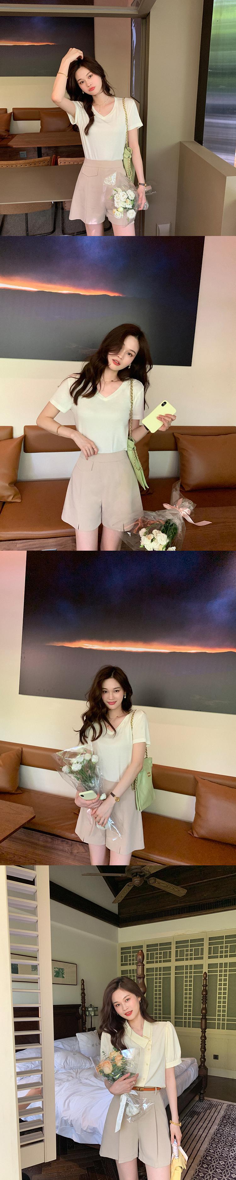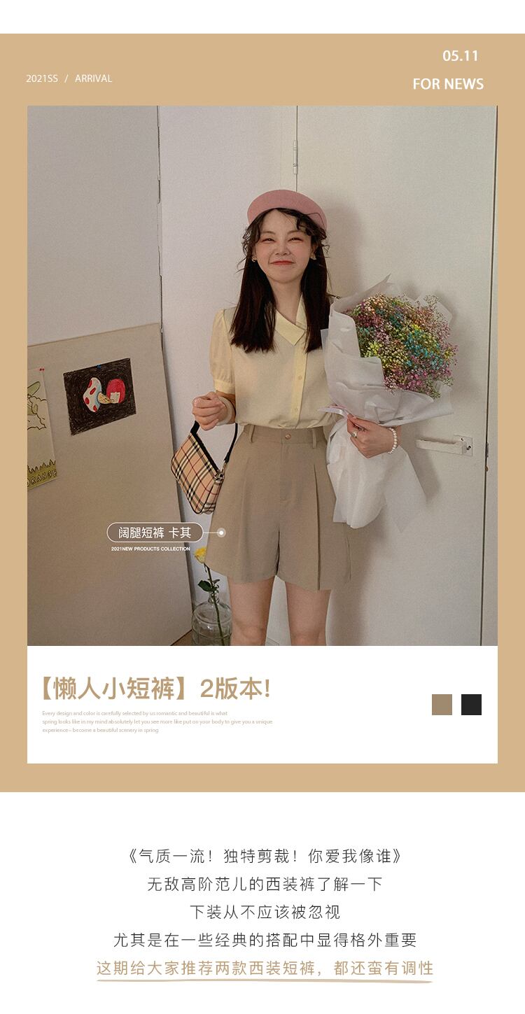 ミスシマリス【レイジースーツショートパンツ】レディースサマーワイドレッグ/スプリットシンハイウエストオールマッチカジュアルパンツ missi88852311235