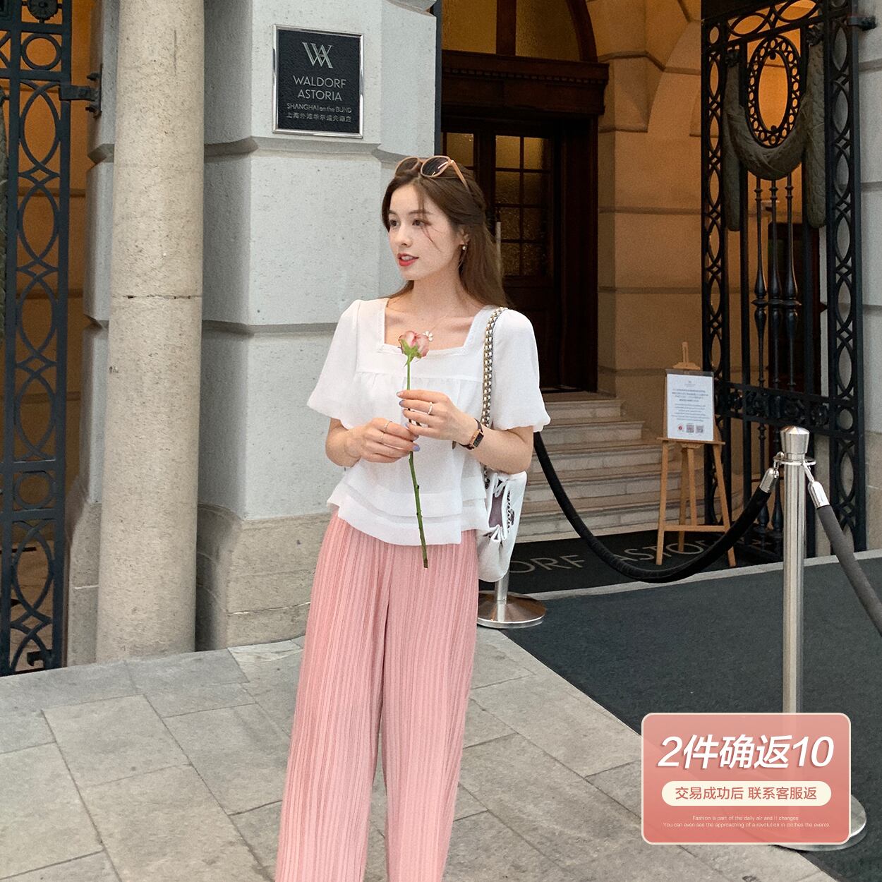 ミスシマリス【イッセイミヤケスーツ】ドレープ薄ピンクプリーツパンツ+ベビードールシャツツーピーススーツ missi58943649359