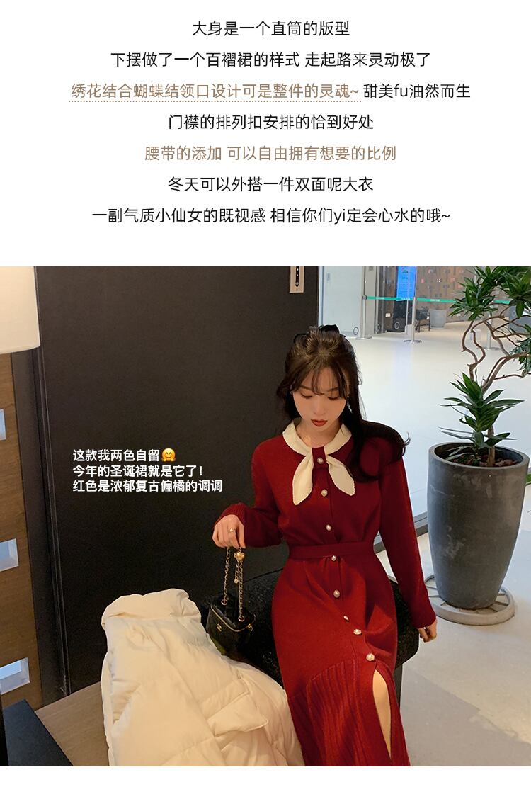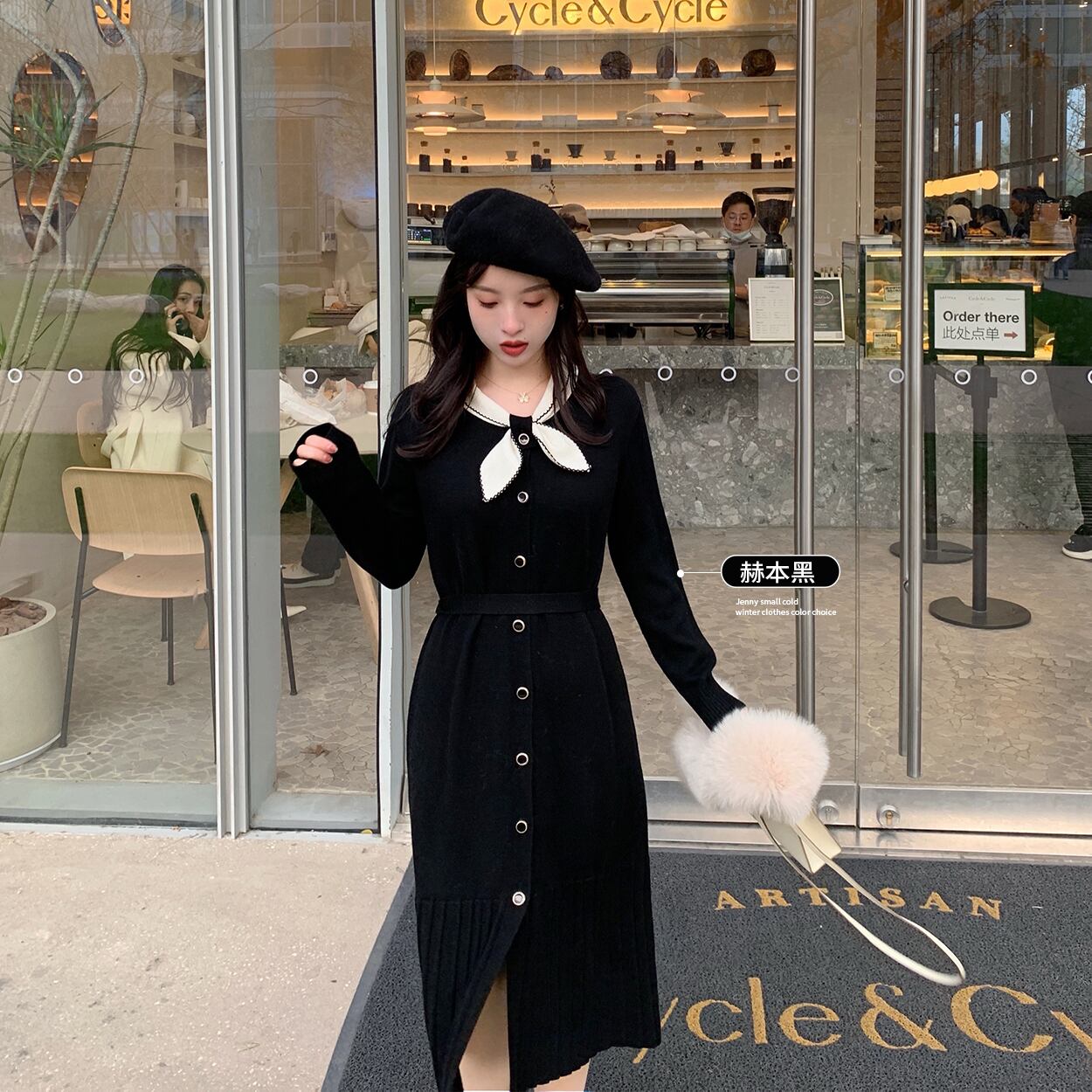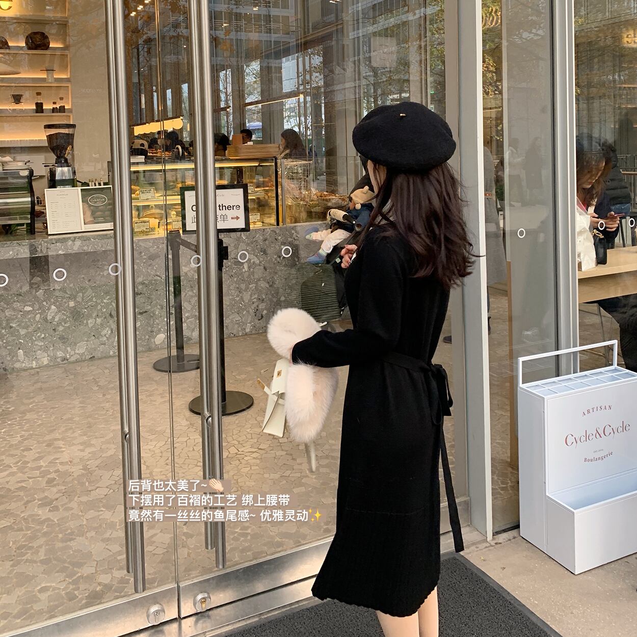 スパイク長袖ドレス2021年秋冬スタイルの気質ウエストと薄手のミドル丈スカートが50%オフ missi6889951629