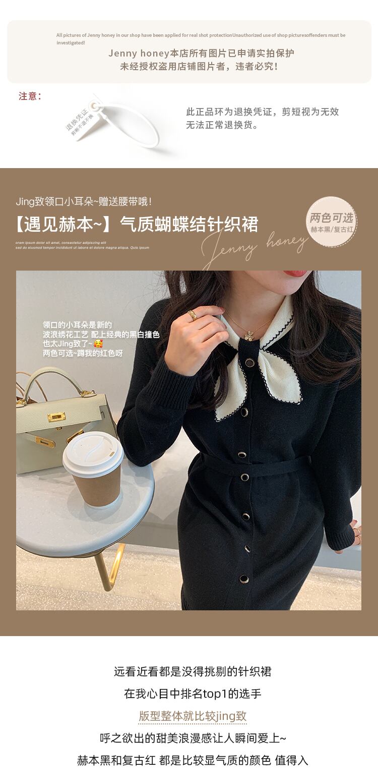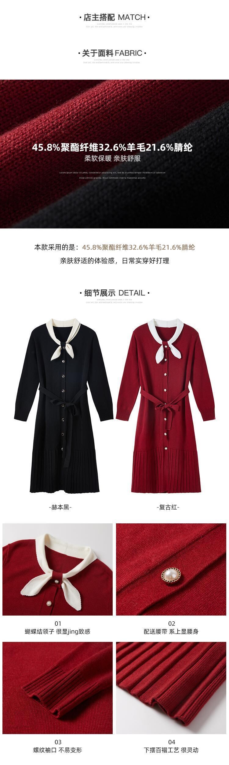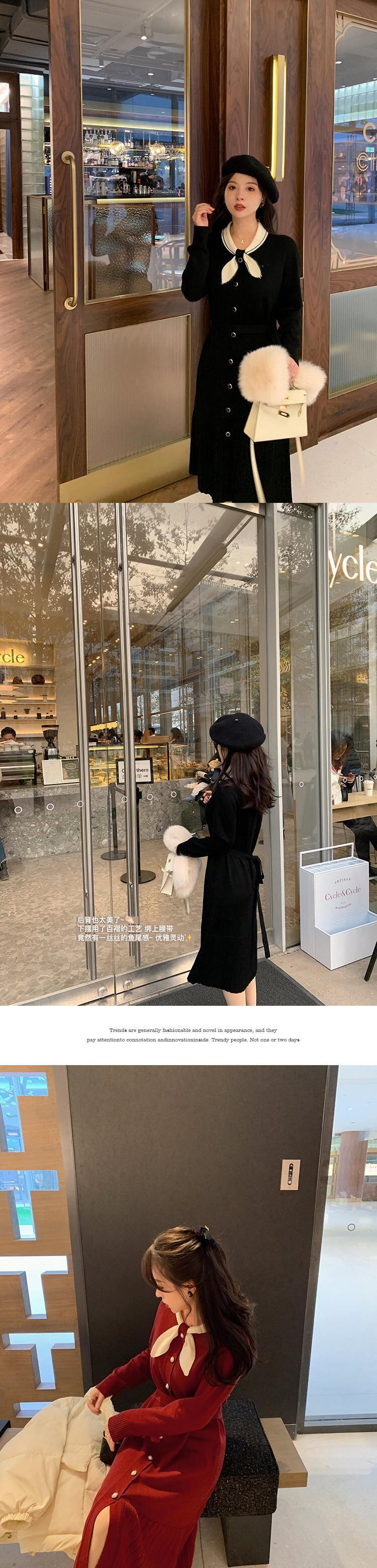 スパイク長袖ドレス2021年秋冬スタイルの気質ウエストと薄手のミドル丈スカートが50%オフ missi6889951629