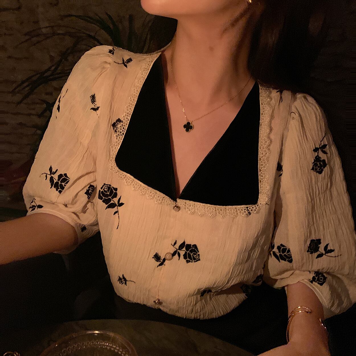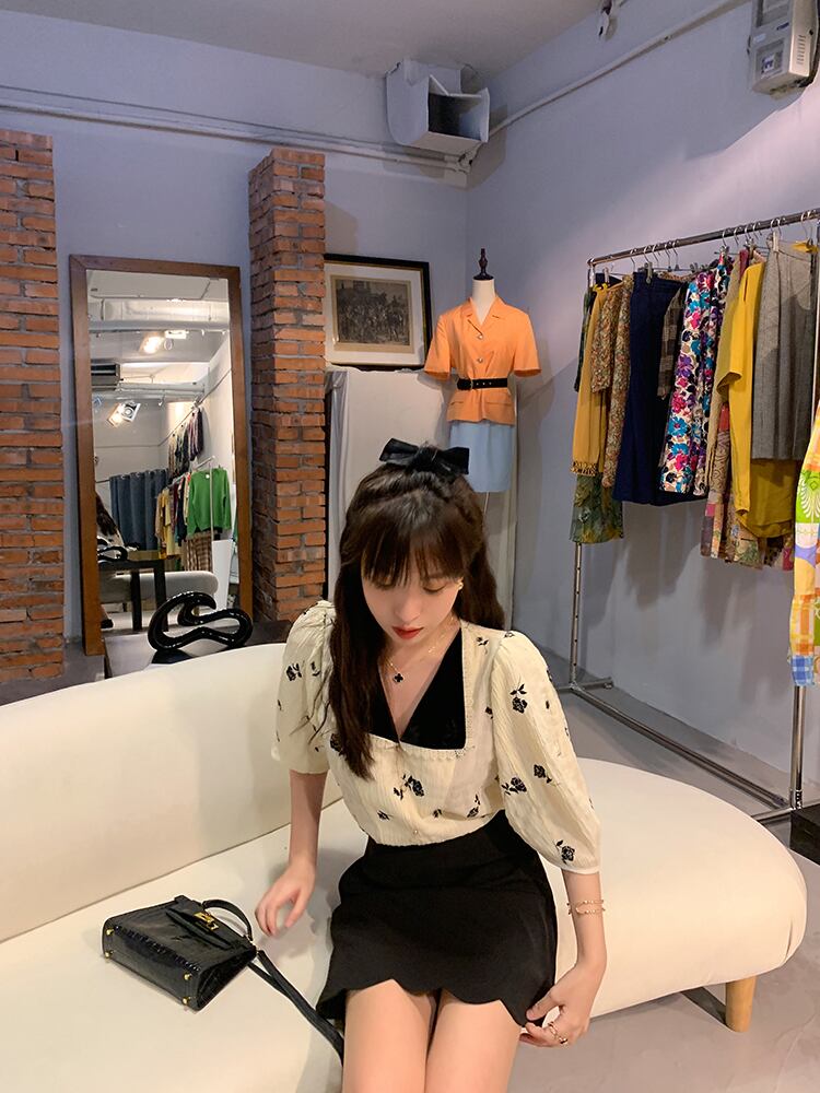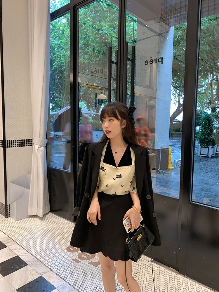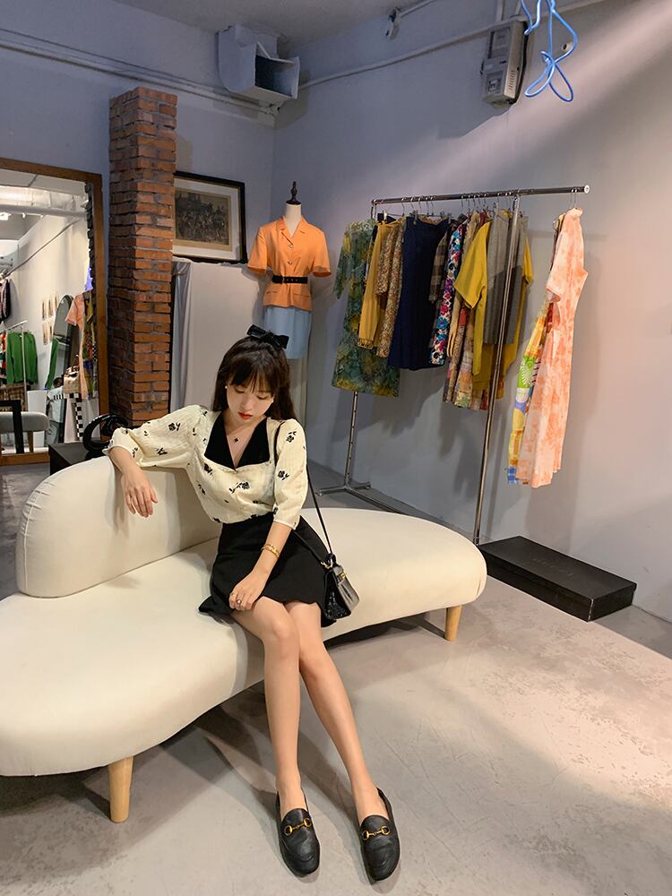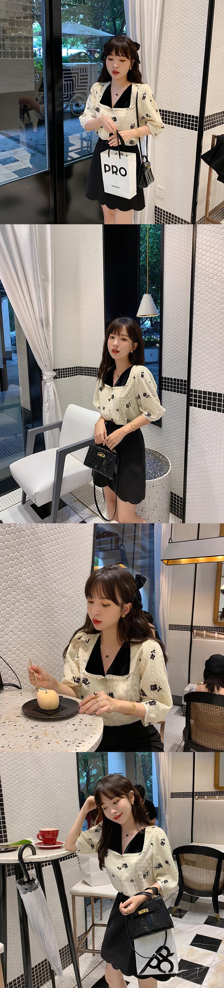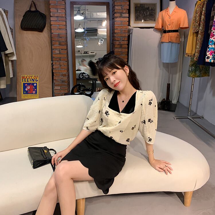 色:トップしわのある黒いフラワースポット,ハーフスカートブラックスポット