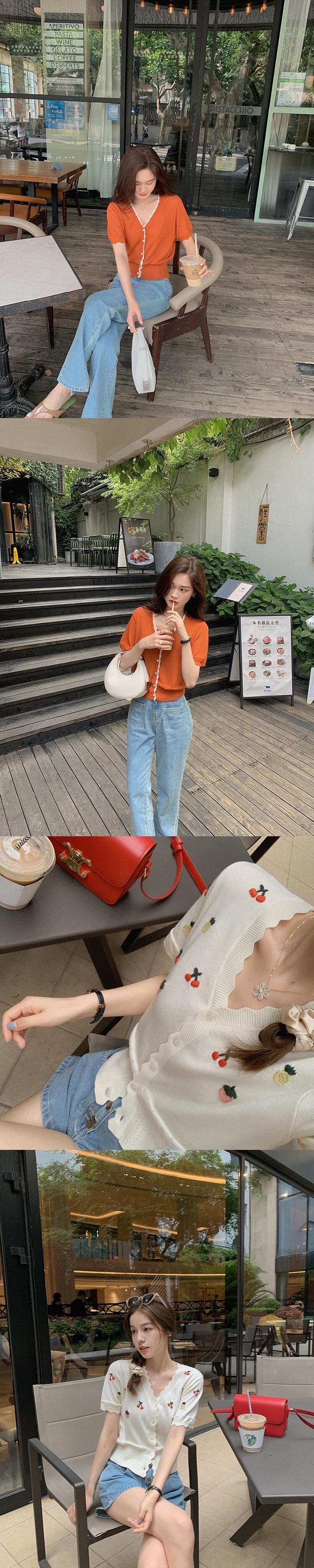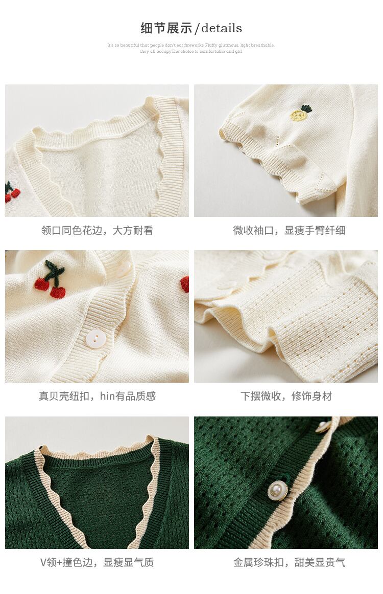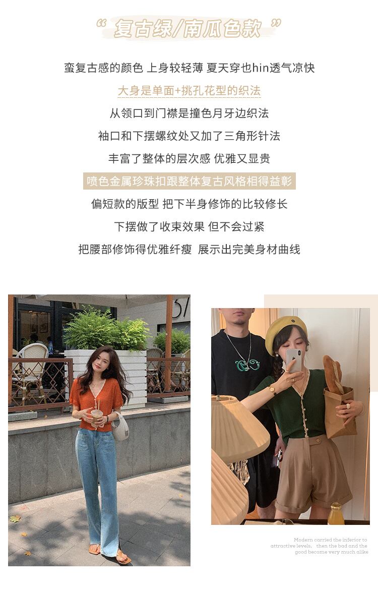 ミスシマリス[estMarket]ヴィンテージ半袖ニットカーディガン薄い女性の夏のVネックフレンチエアコンシャツ missi88762722572