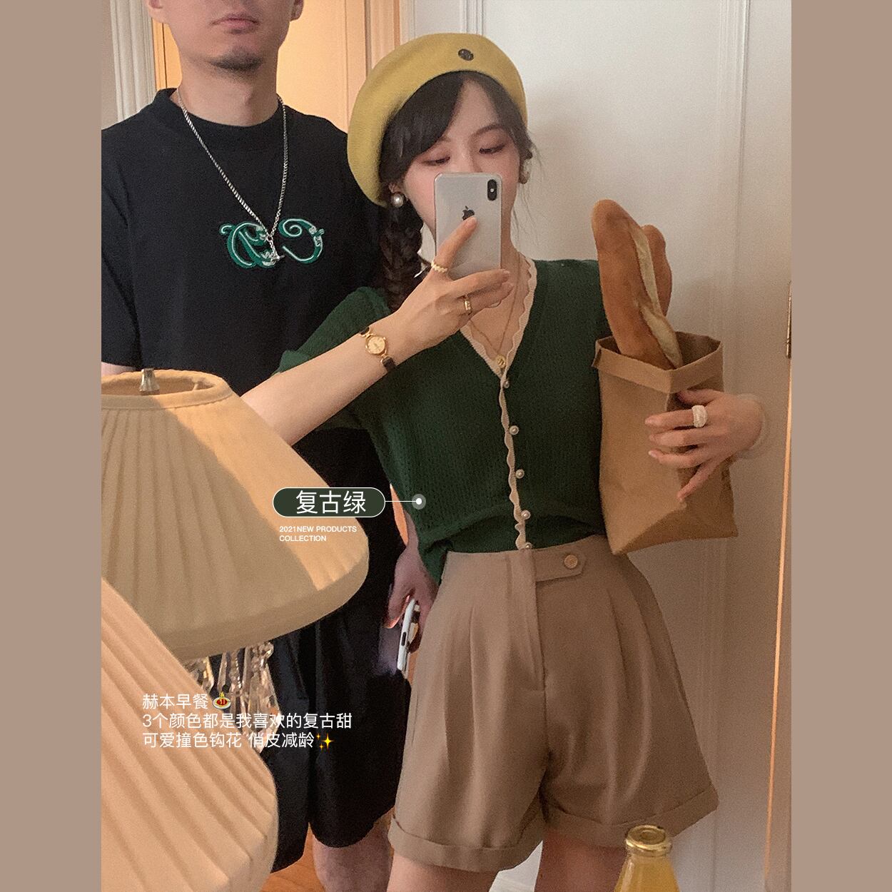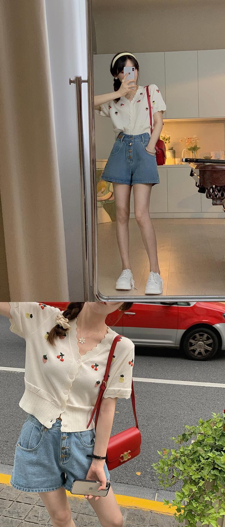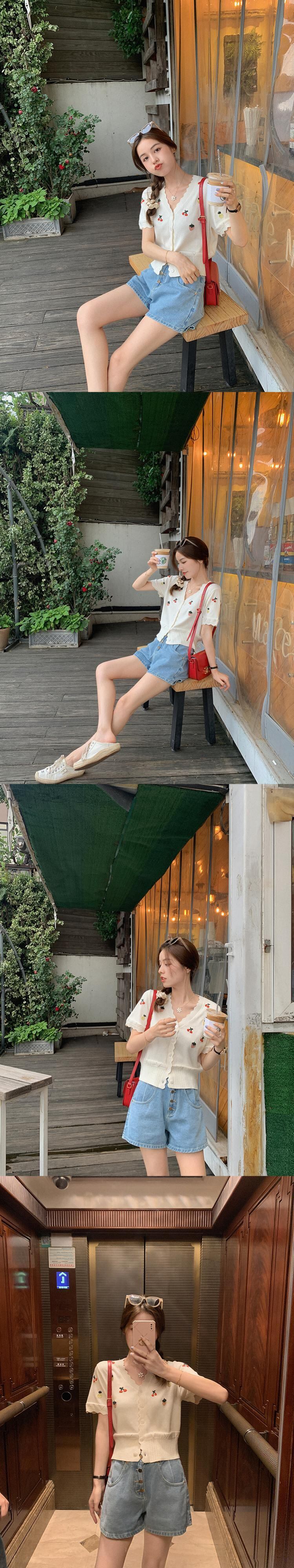ミスシマリス[estMarket]ヴィンテージ半袖ニットカーディガン薄い女性の夏のVネックフレンチエアコンシャツ missi88762722572
