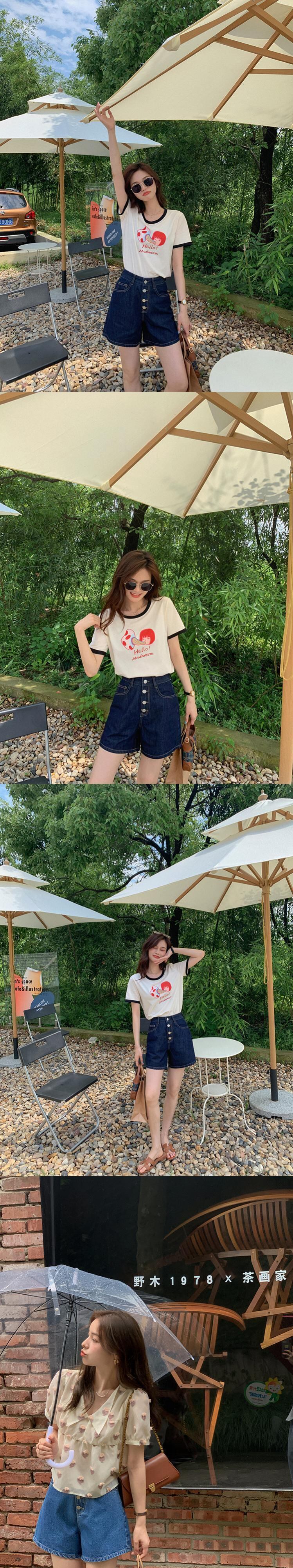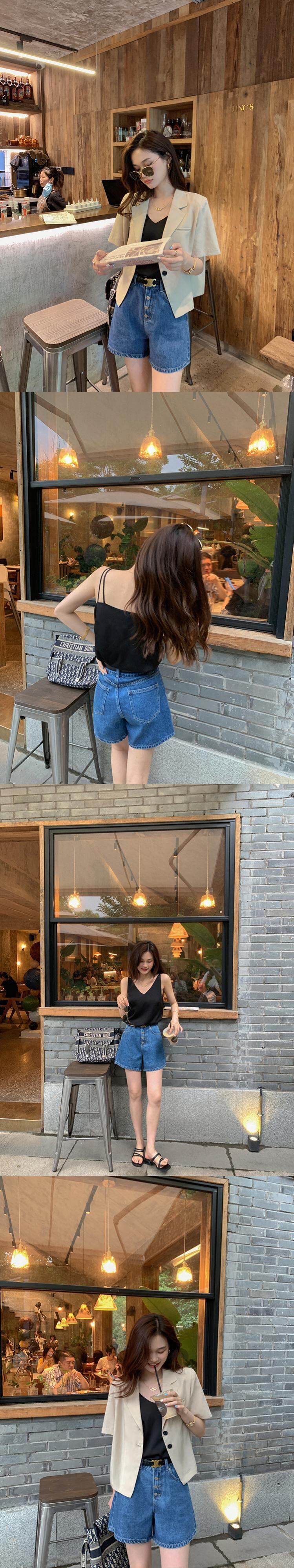 ミスチップマンク[音楽祭ホットパンツ]-ウエストデニムショーツ、女性の夏、Aラインショーツ missi8065373674