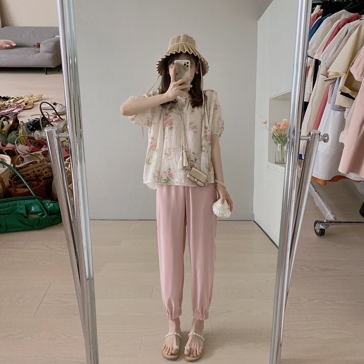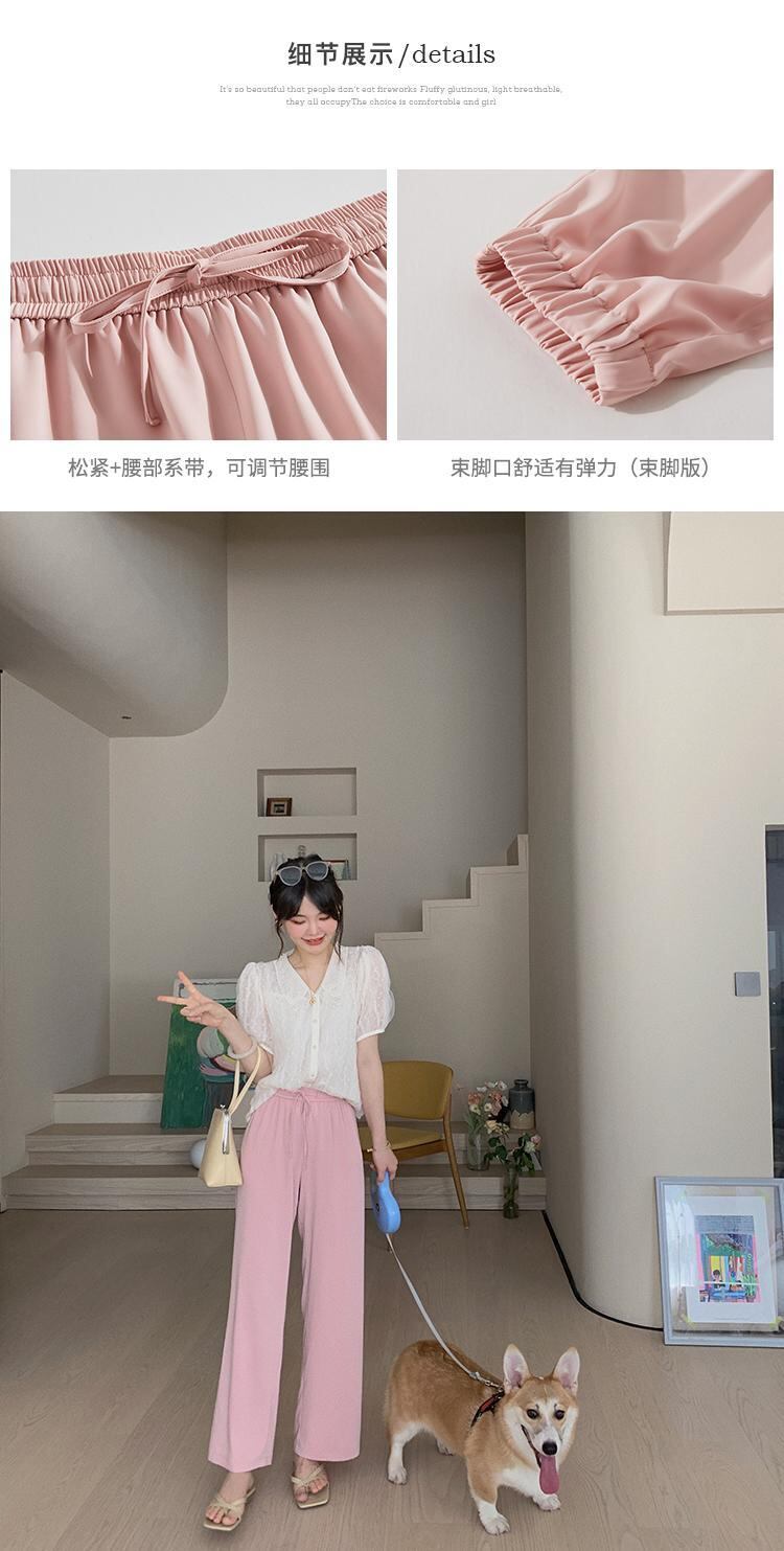 ミスシマリス【ウォーキングパンツ】ピンクの薄夏ドレープストレートレッグパンツレディースカジュアルスリムパンツ missi18816019694