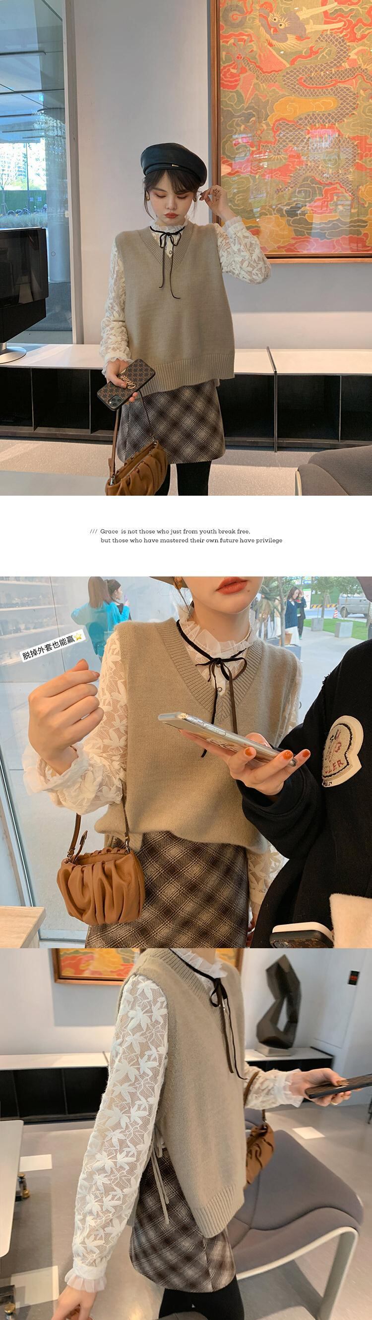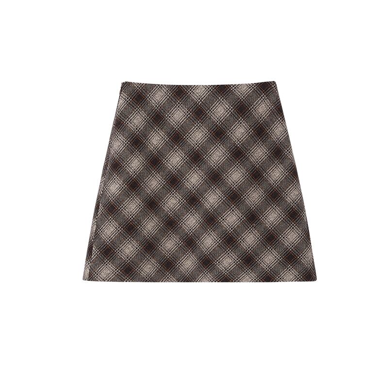 ミスチップマンクチェック柄スカート秋冬女性2020新冬セーターショートスカートAラインスリムスカート missi89698102984