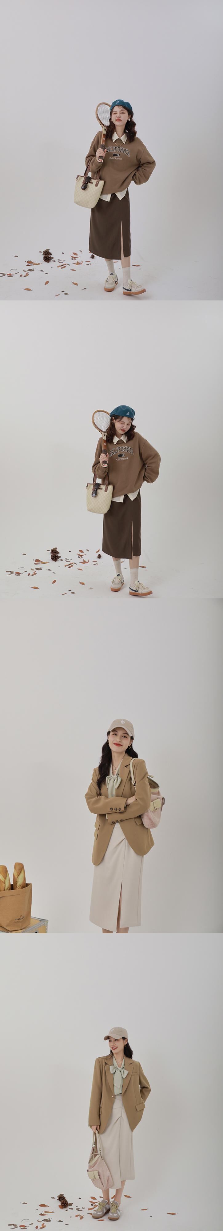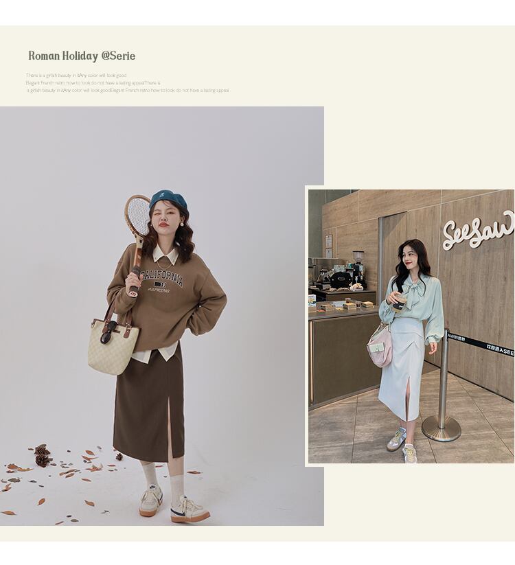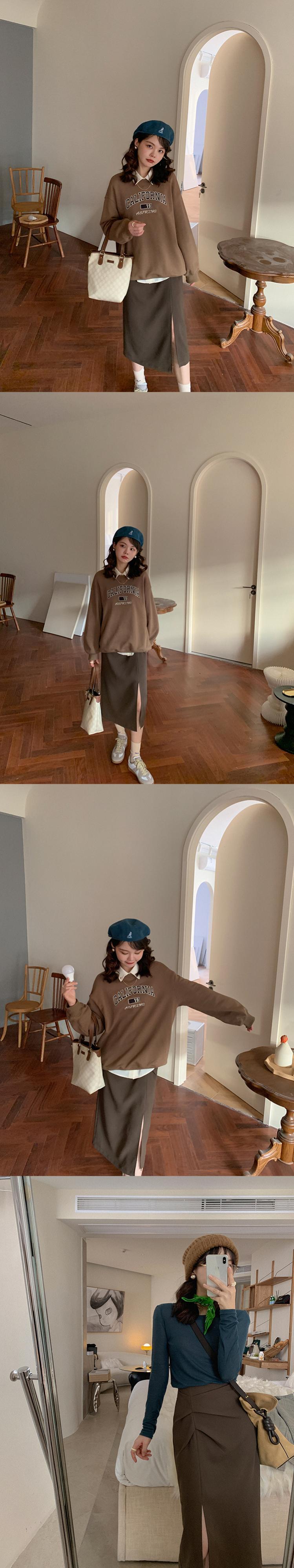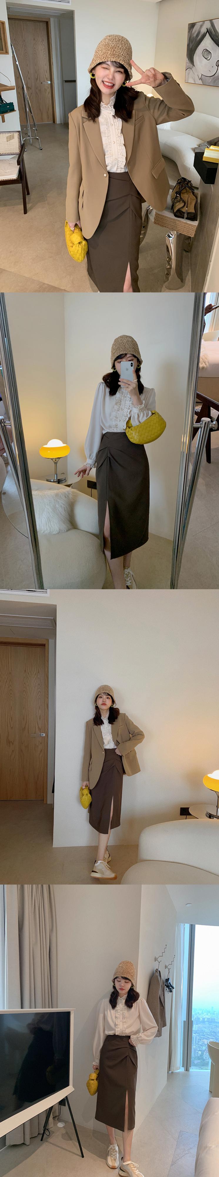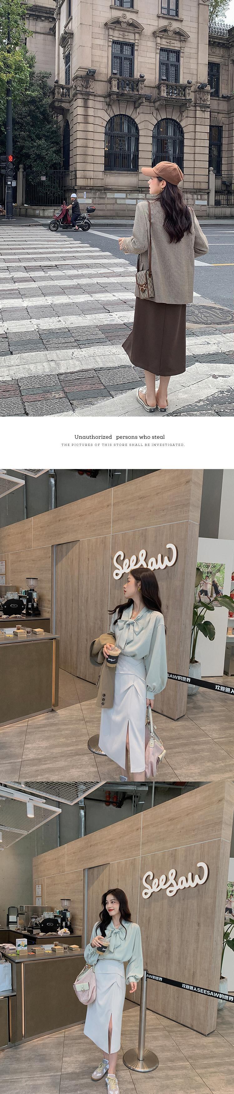 ミスチップマンクス【フィルムスカート】スリット入りスリミングのミドル丈ハイウエストコーヒーカラーデザインニッチスカート missi18496407665