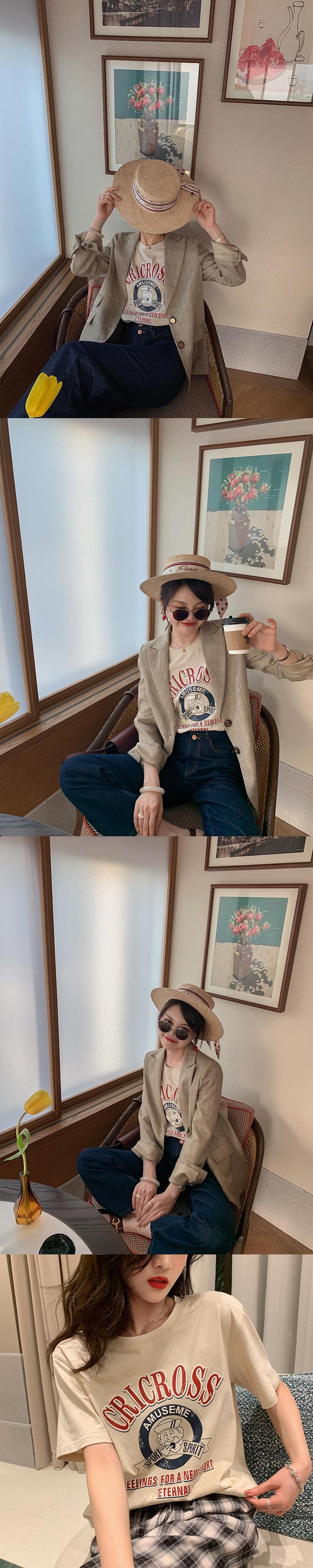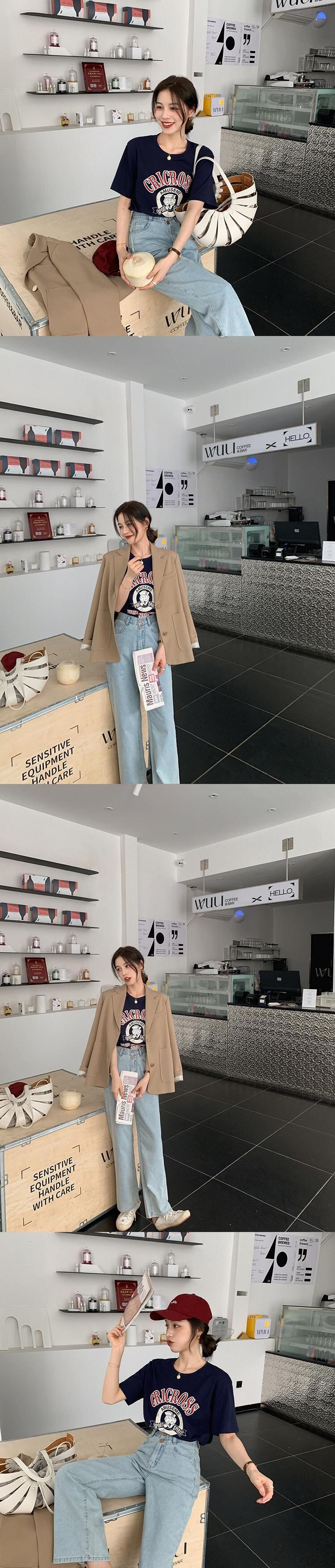 ミスシマリスレトロオールドキャプテン半袖Tシャツ女性2021年夏ホワイトプリントコットンデザイントップ missi65174058960