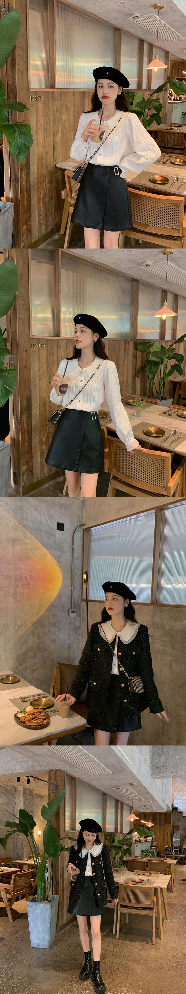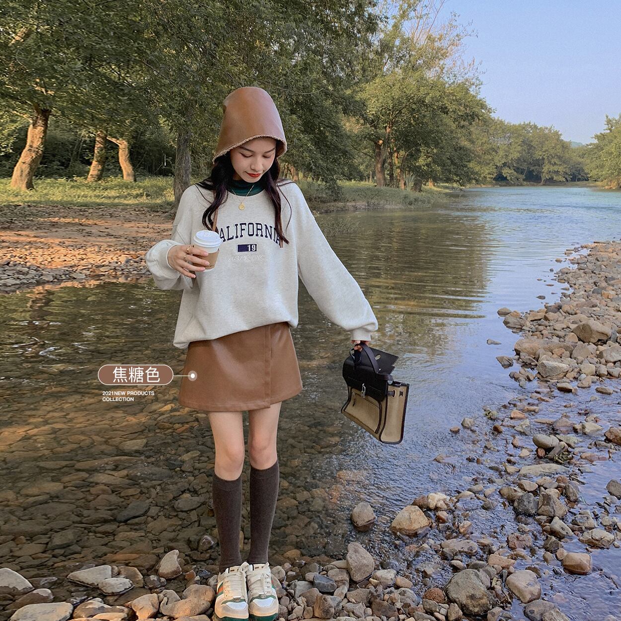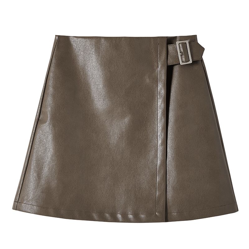 ミスシマリス【食物連鎖レザースカート】グレーコーヒーカラーレザースカートスカート2021新作スリムショートスカート missi62738920134