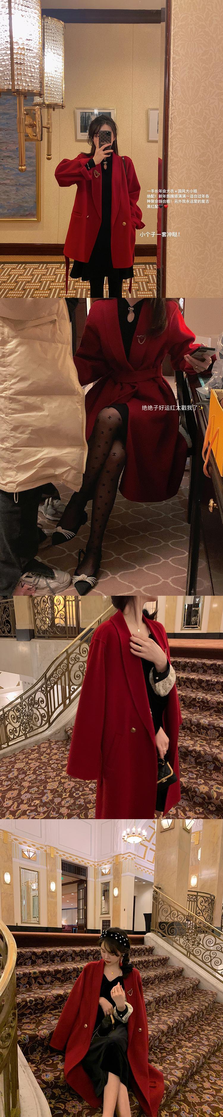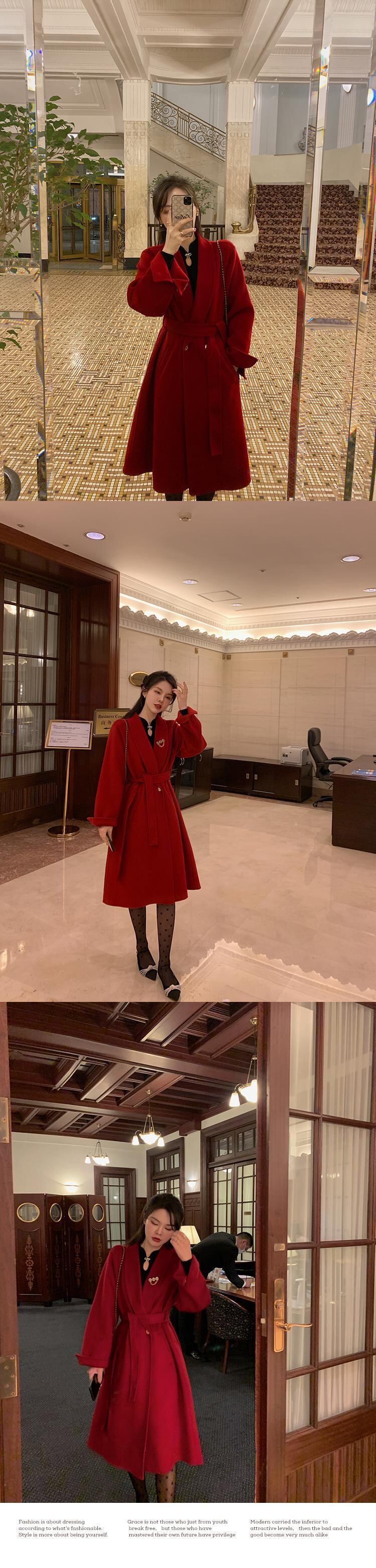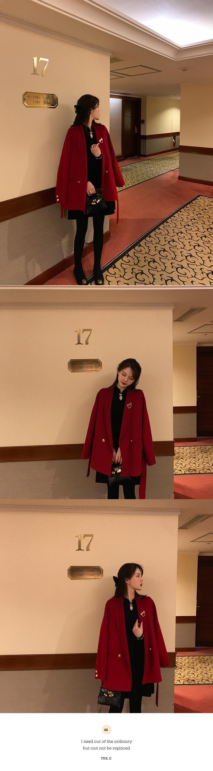 ミスシマリス年次総会コートウィメンズ2020スモールウールレッドミドルレングスウールコート missi63928194889