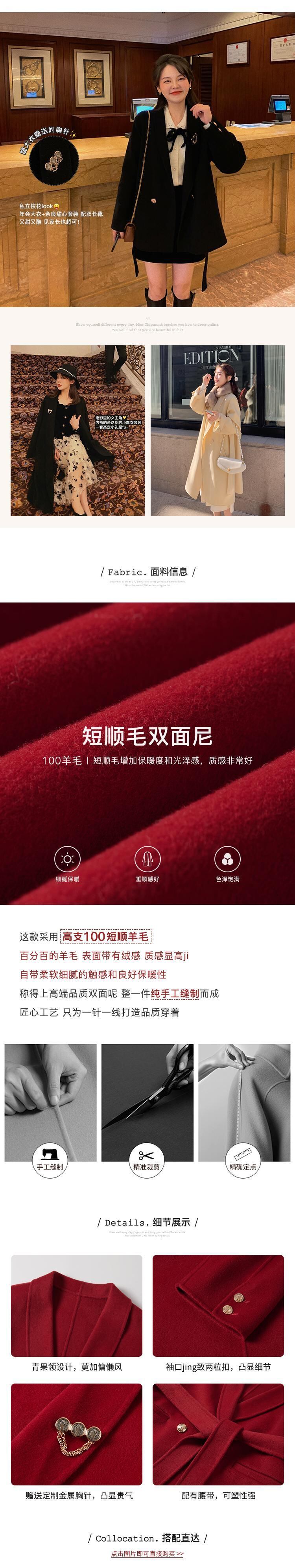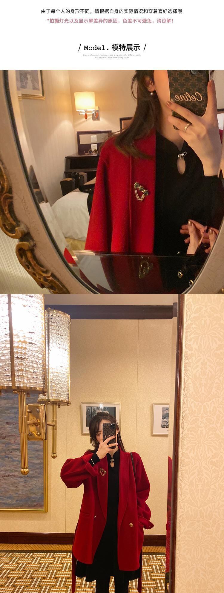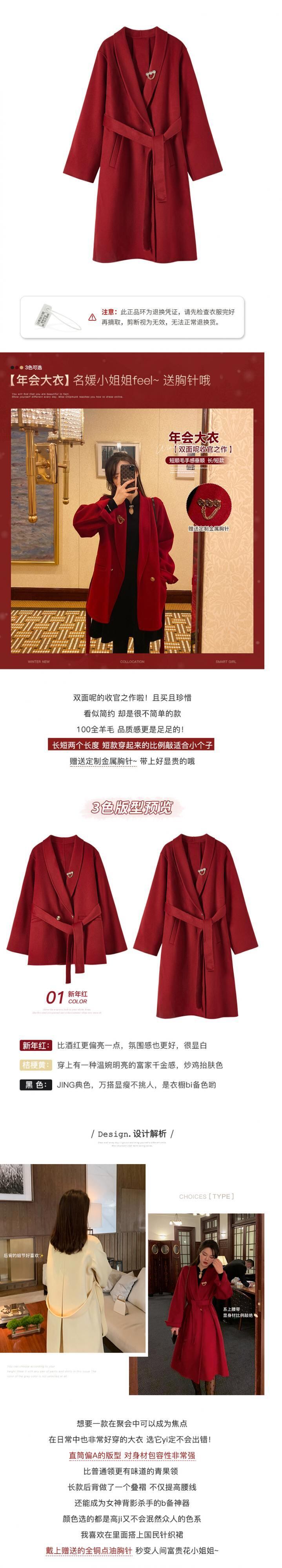 ミスシマリス年次総会コートウィメンズ2020スモールウールレッドミドルレングスウールコート missi63928194889