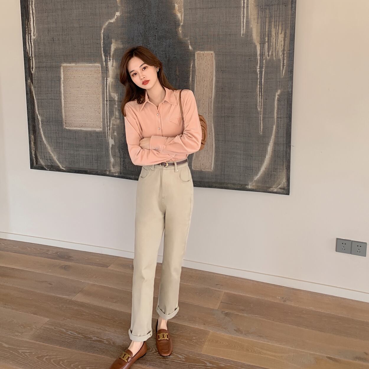 チップマンクさん【母乳茶】ソルトミルクティーカラー~~やさしくて着やすいカジュアルパンツ!ギフトベルト missi84232770834