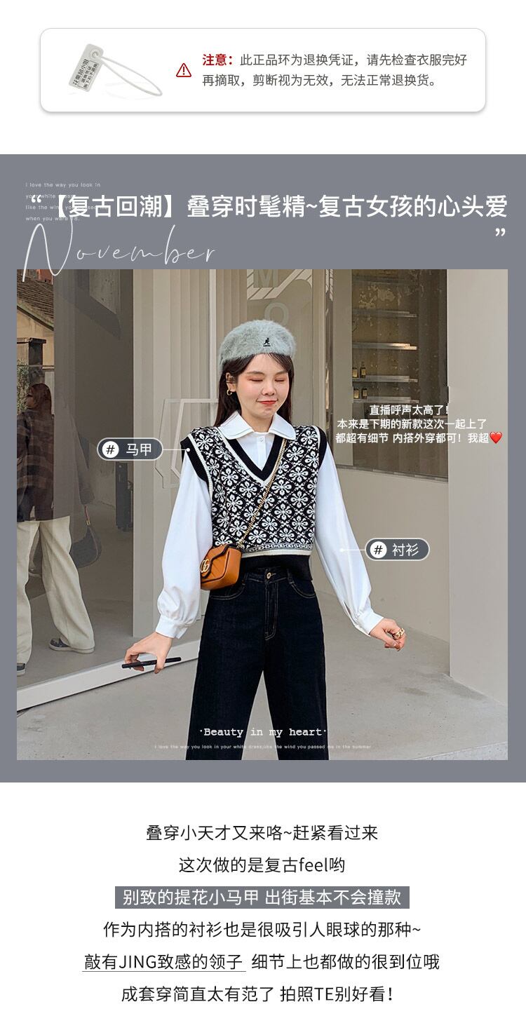 ミスチップマンクVネックニットベスト女性2021年春のセーターベストはワイルドベストを着用 missi54311888787