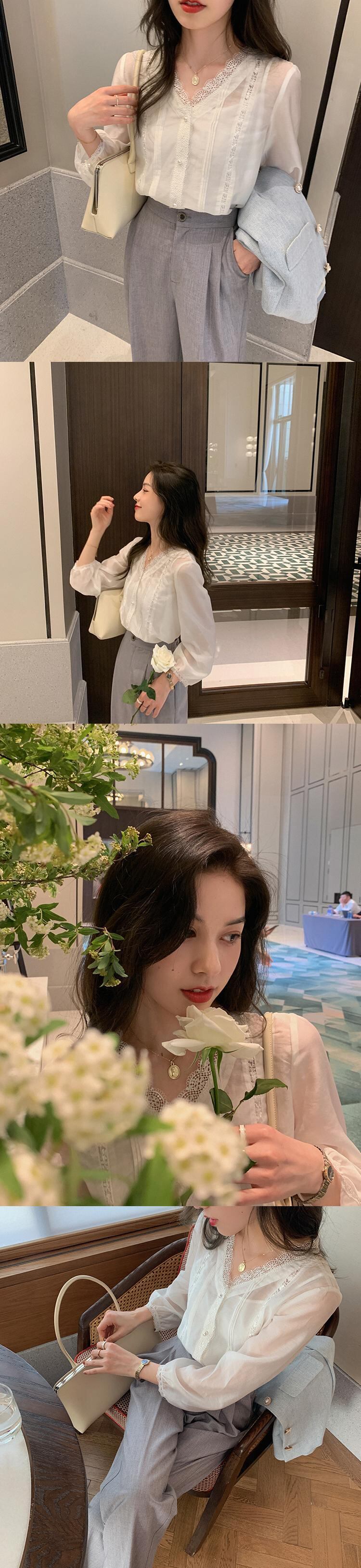 チップマンクさん【センポーナリトルシャツ】レースブラウス女性夏ファッションドールカラーシャツボトミングシャツ missi83283527721