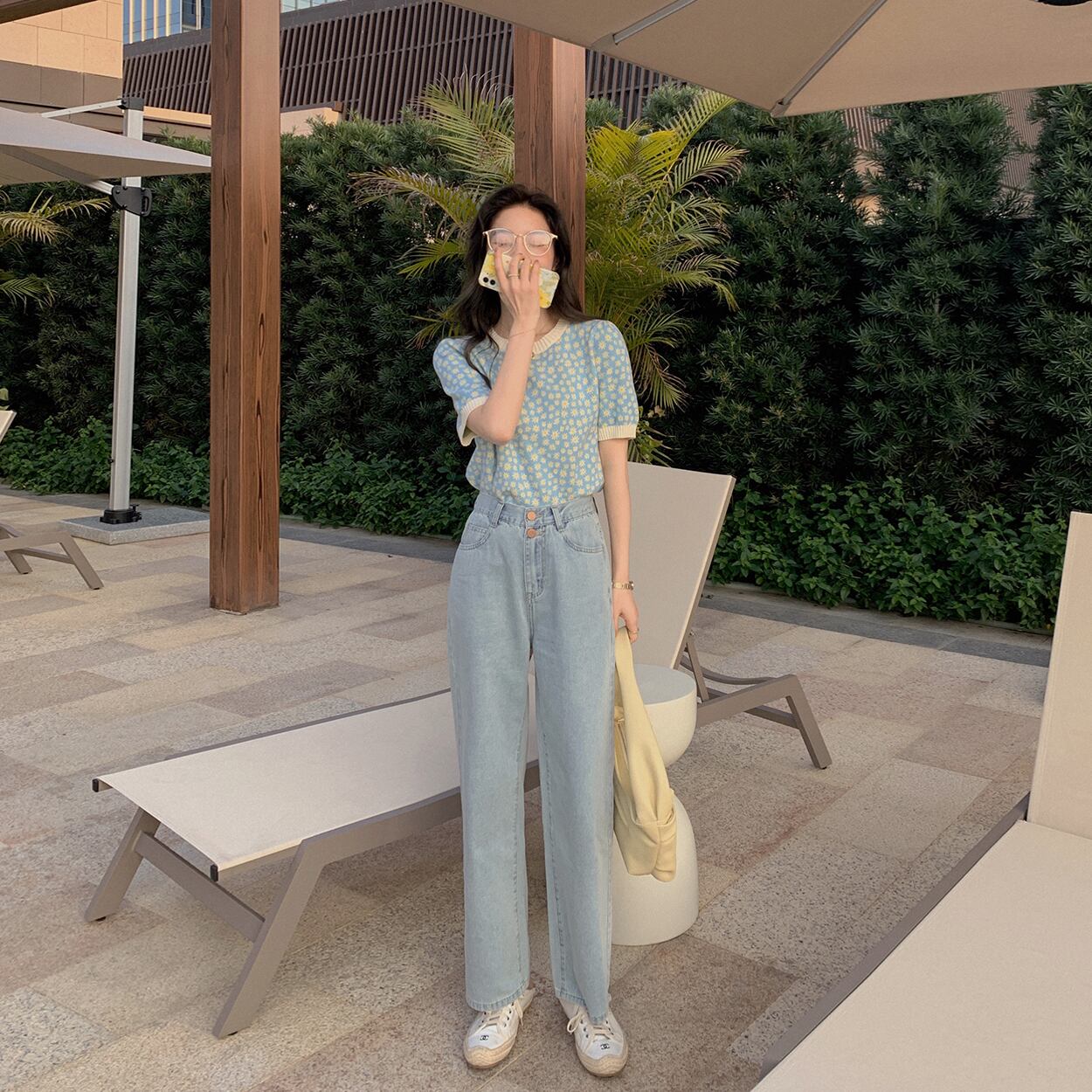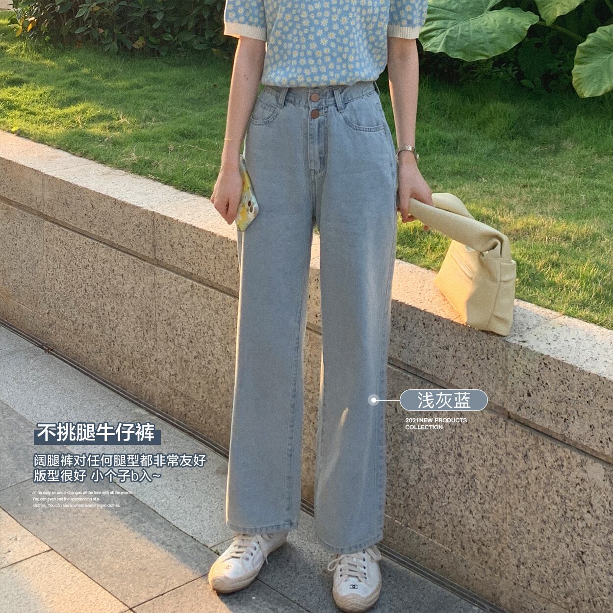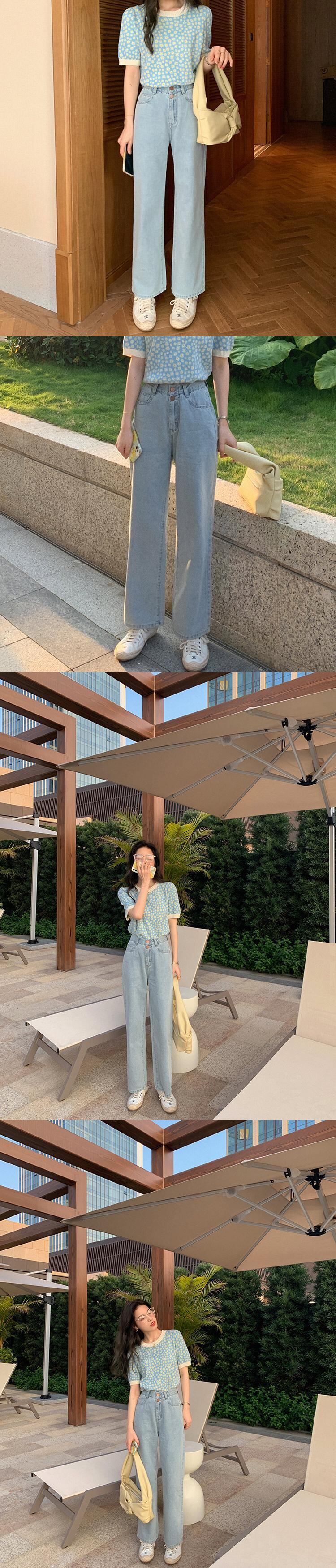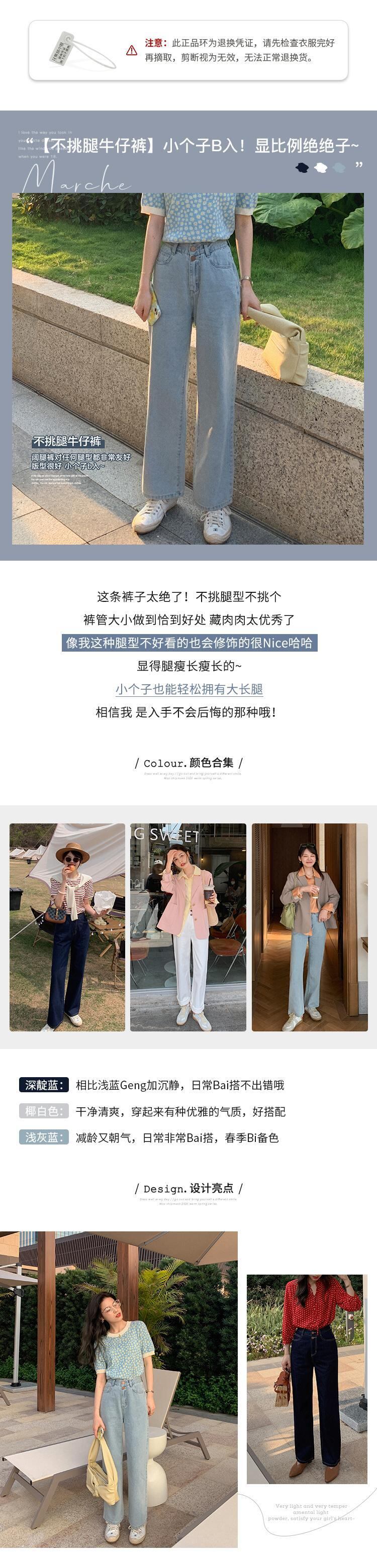 ミスシマリスウエストストレートジーンズ夏西安シンルーススモールダークブルーパンツワイドレッグパンツホワイト missi84262996930