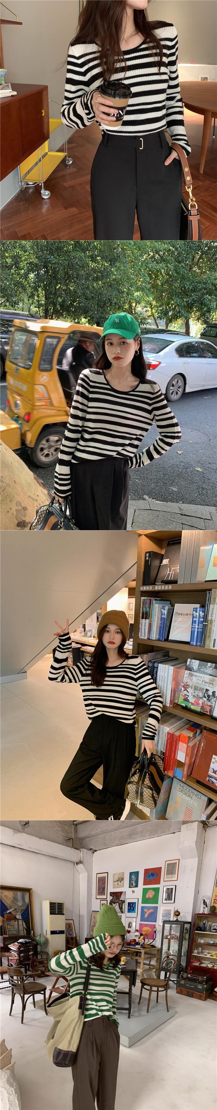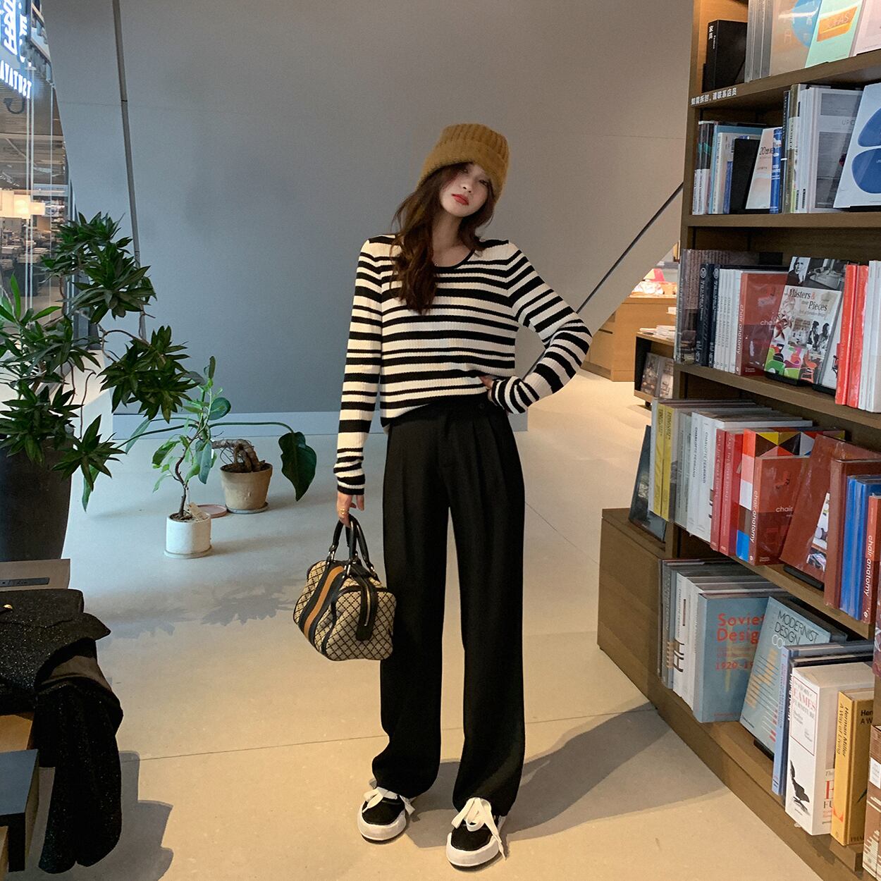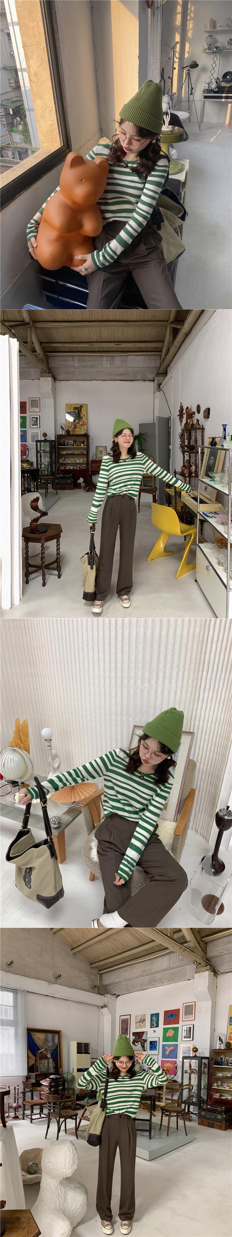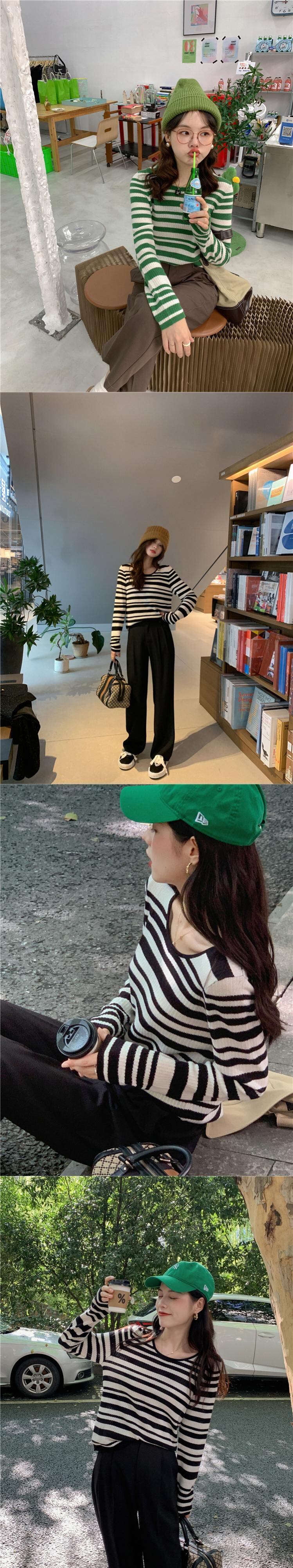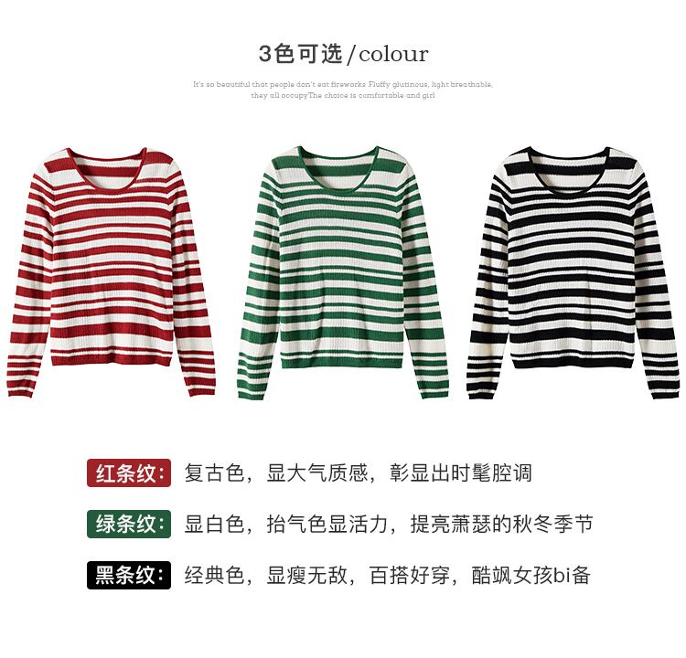 ミスシマリス【ポーラニット】初秋新作セーターレイジースタイルストライプボトミングシャツ2021秋 missi37921489569