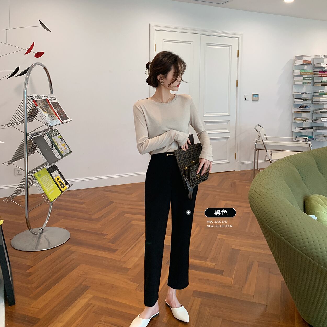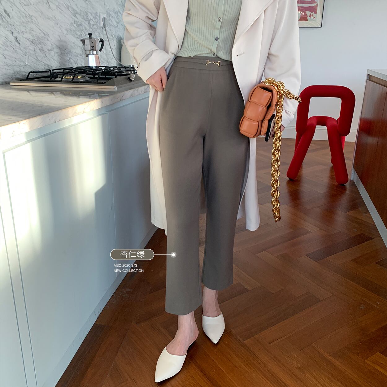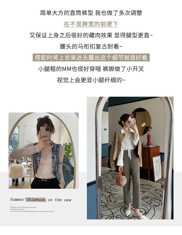 ミスシマリスパンツレディース2020新しいスリムで用途の広いテクスチャスーツパンツハイウエストドレープストレートレッグパンツ missi81399229432