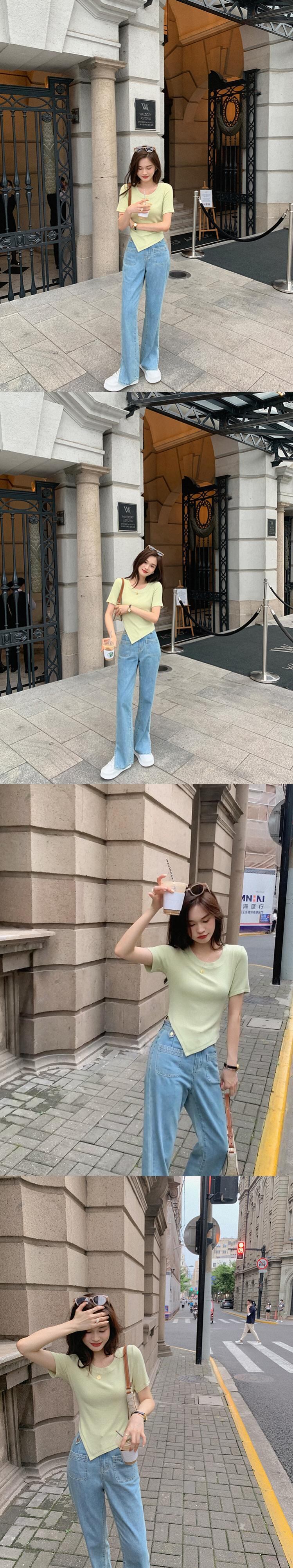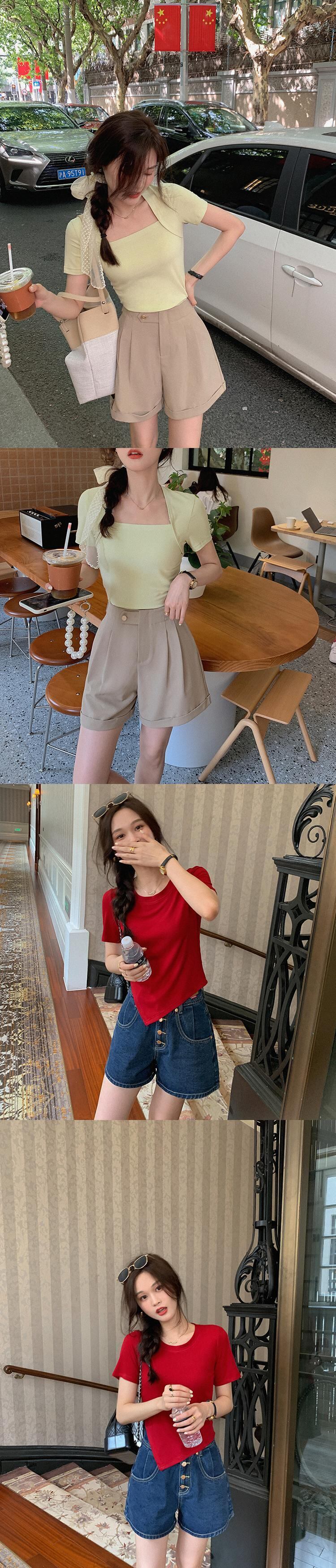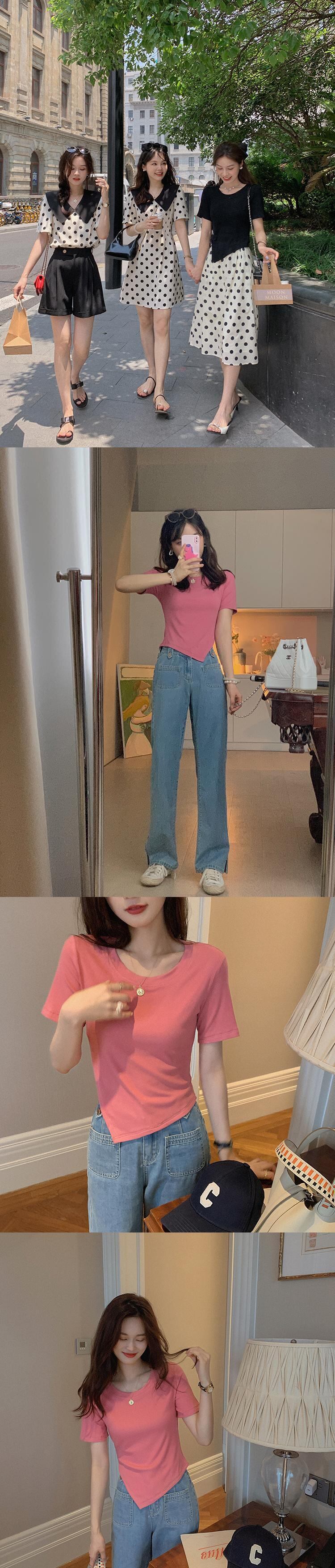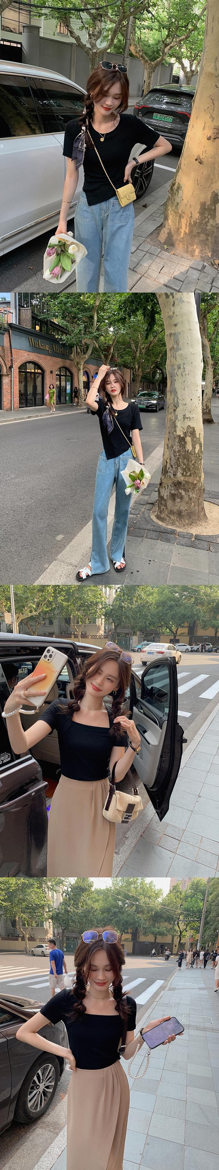 ミスシマリス超薄半袖Tシャツサマーショート、丁寧なマシン2バージョン、ベベルサイドスプリット、オールマッチ無地 missi41629928380