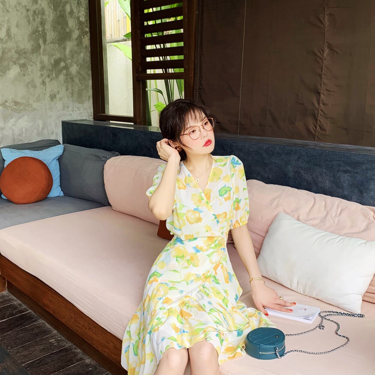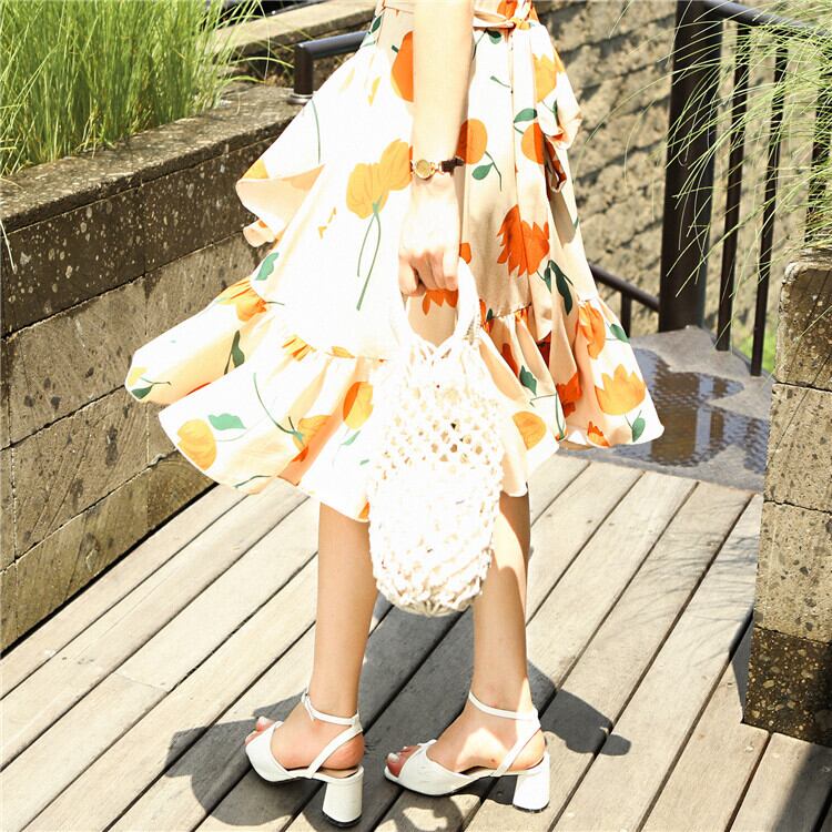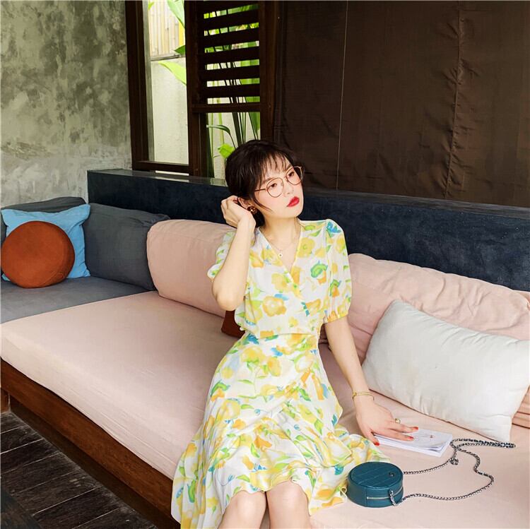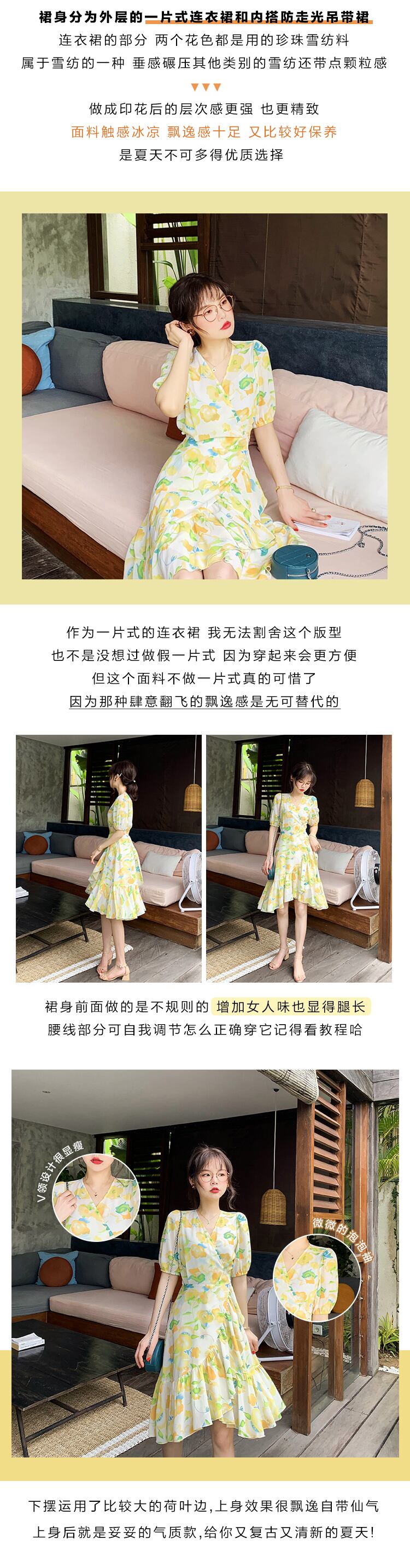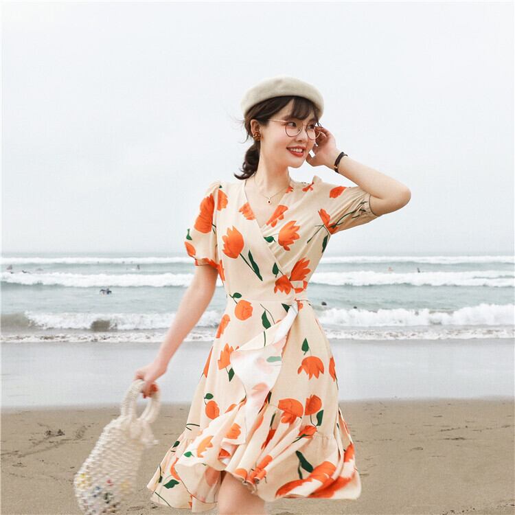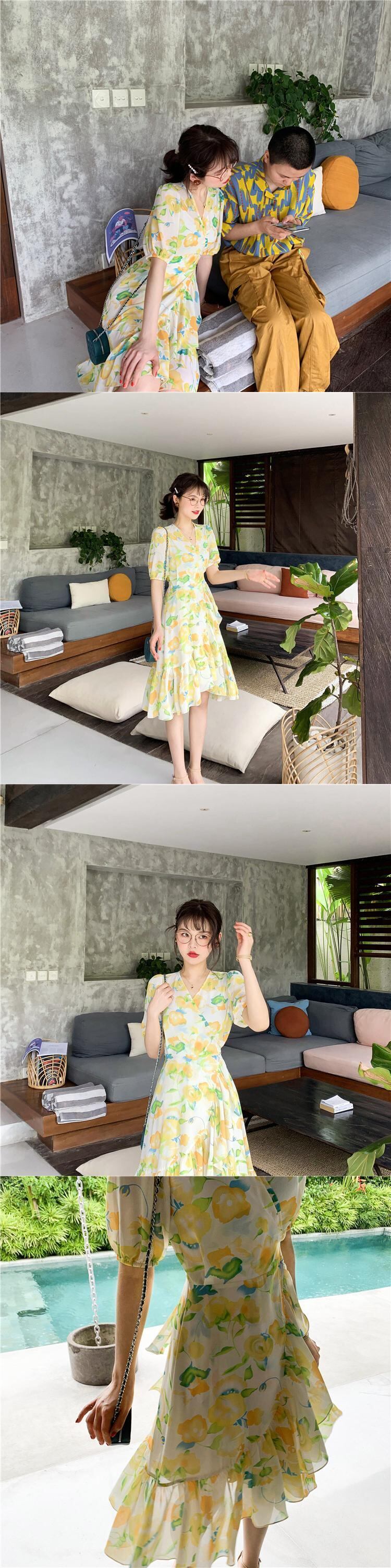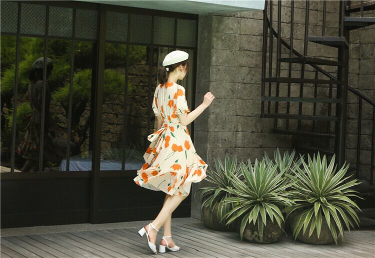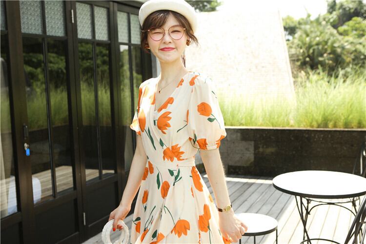 ミスシマリスアヒルの休暇に行きます!チューリップフレンチロマンティックラージプリントワンピースシフォンワンピース missi30148480051