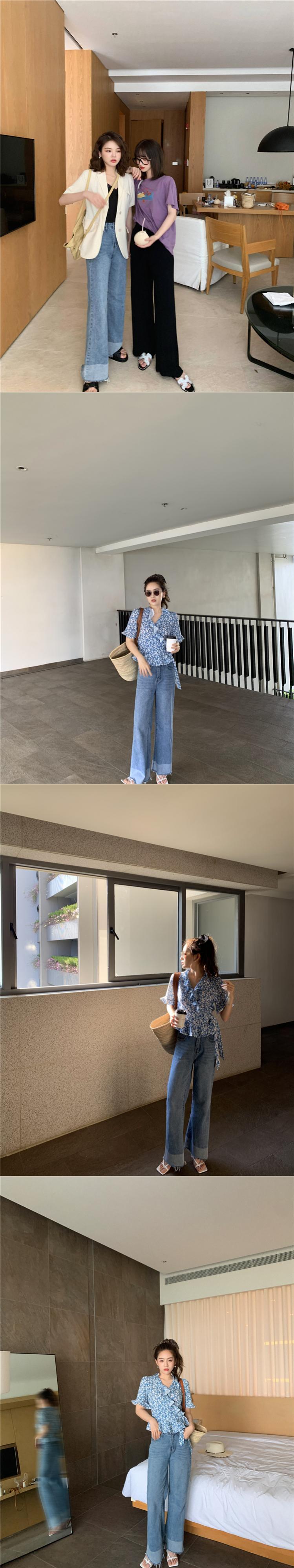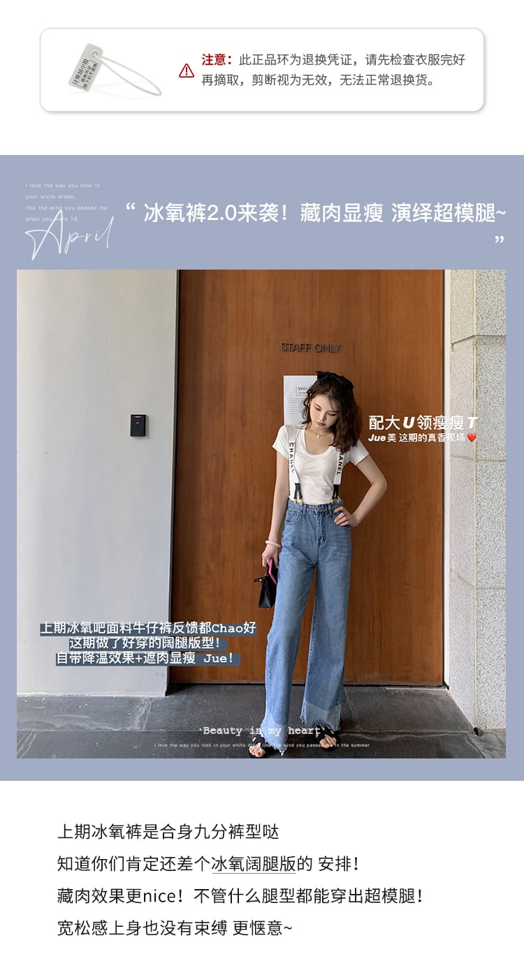 ミスシマリスアイス酸素ジーンズルーズストレートウエストワイドレッグパンツオールマッチシンパンツレディースサマーシン missi35151520084