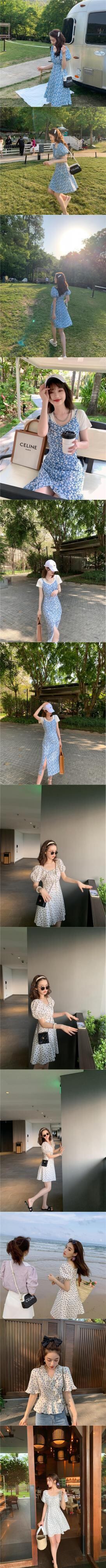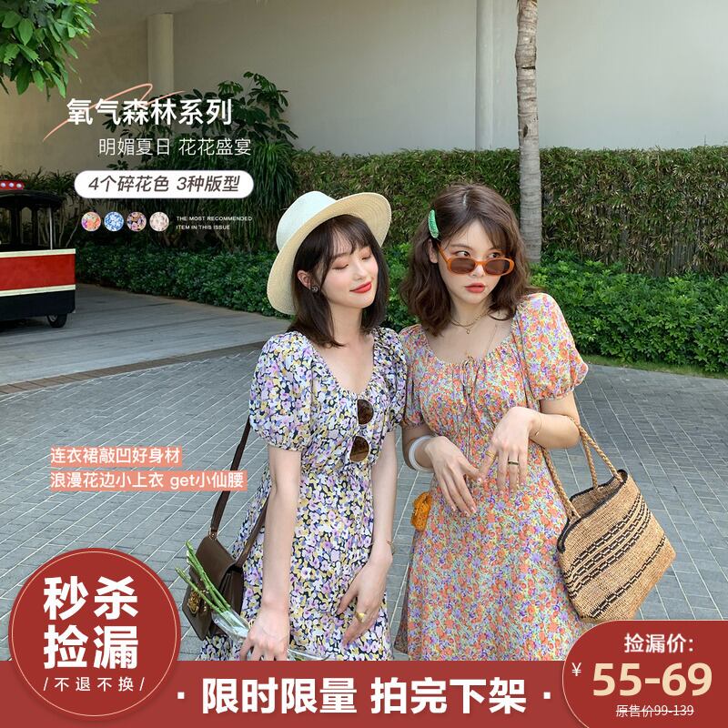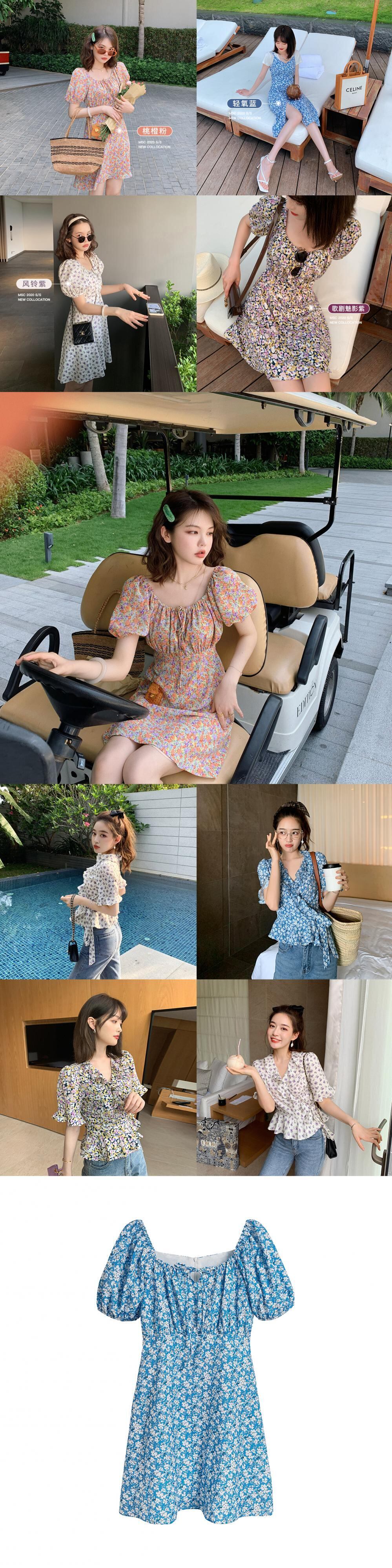 ミスシマリスシフォンフレンチフローラルドレス2020年夏パフスリーブヘップバーンスタイルロングドレス missi76285253804