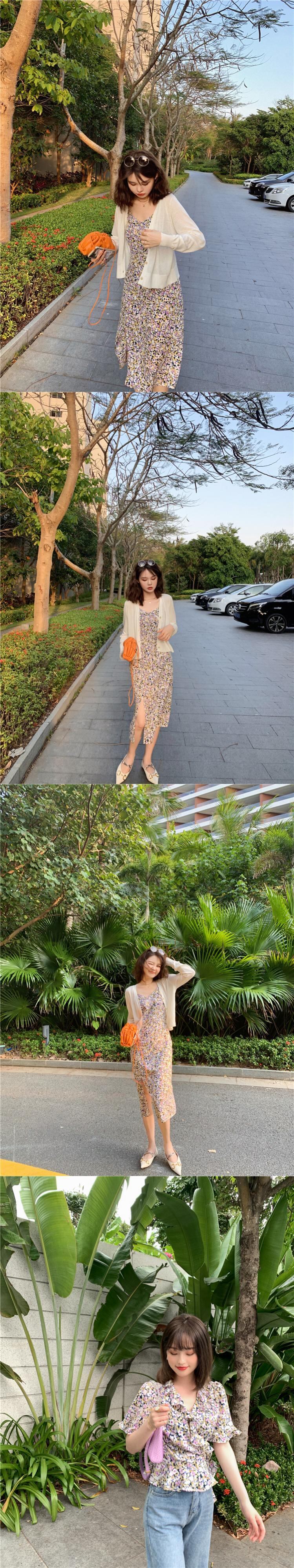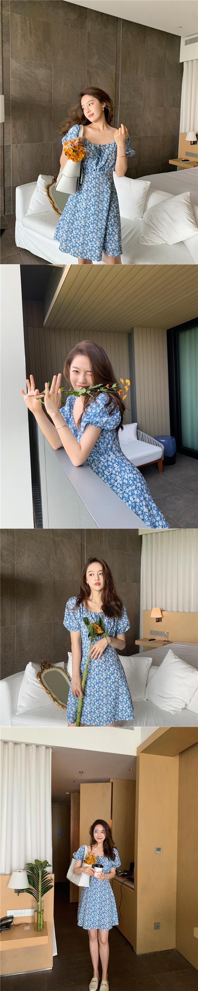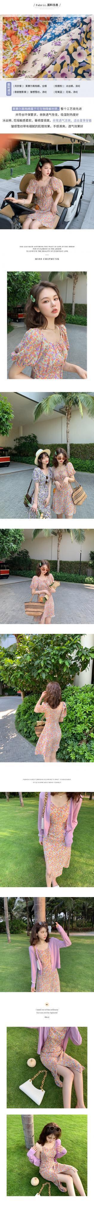 ミスシマリスシフォンフレンチフローラルドレス2020年夏パフスリーブヘップバーンスタイルロングドレス missi76285253804