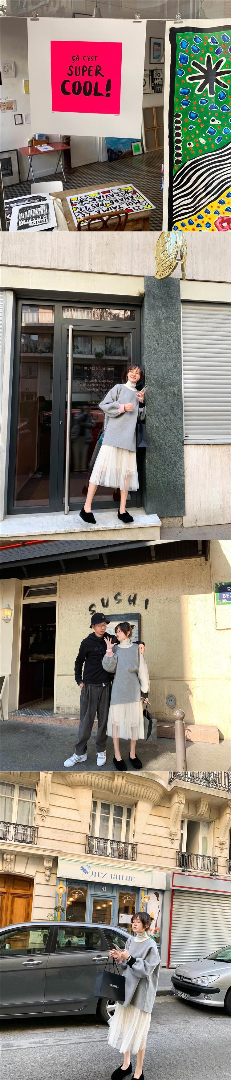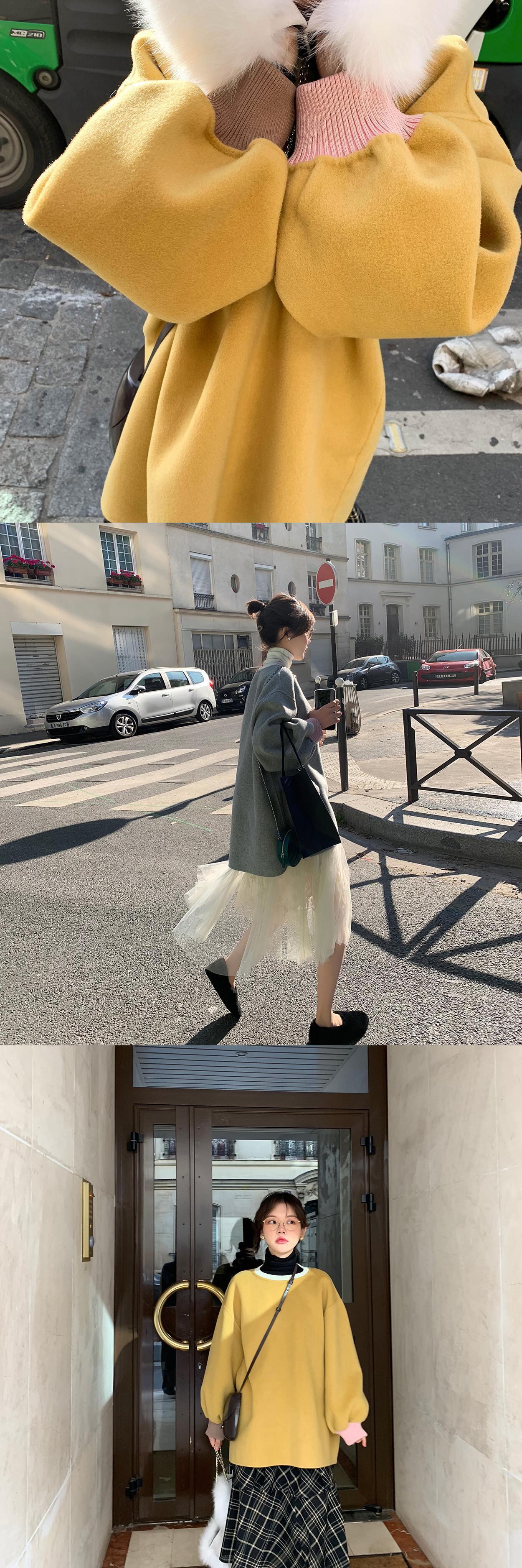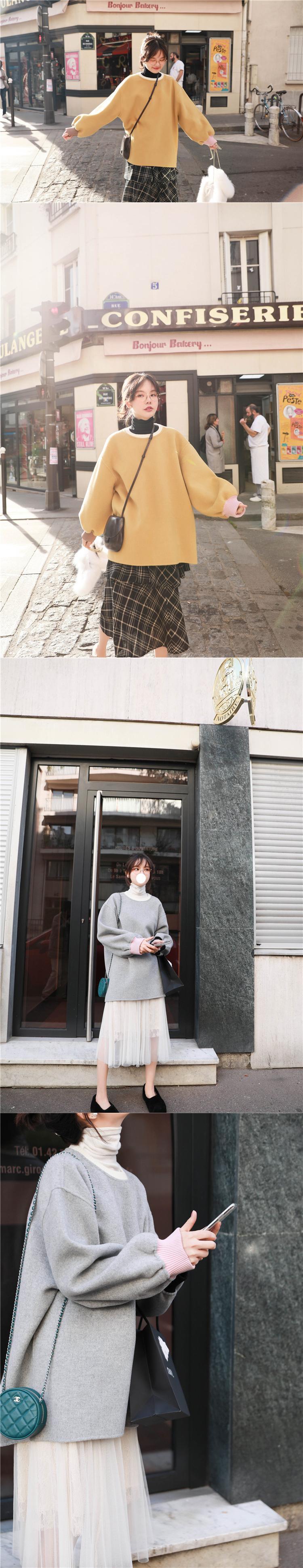 ミスシマリスフルウール両面ロングセーター、対照的な袖口付き missi9252654252