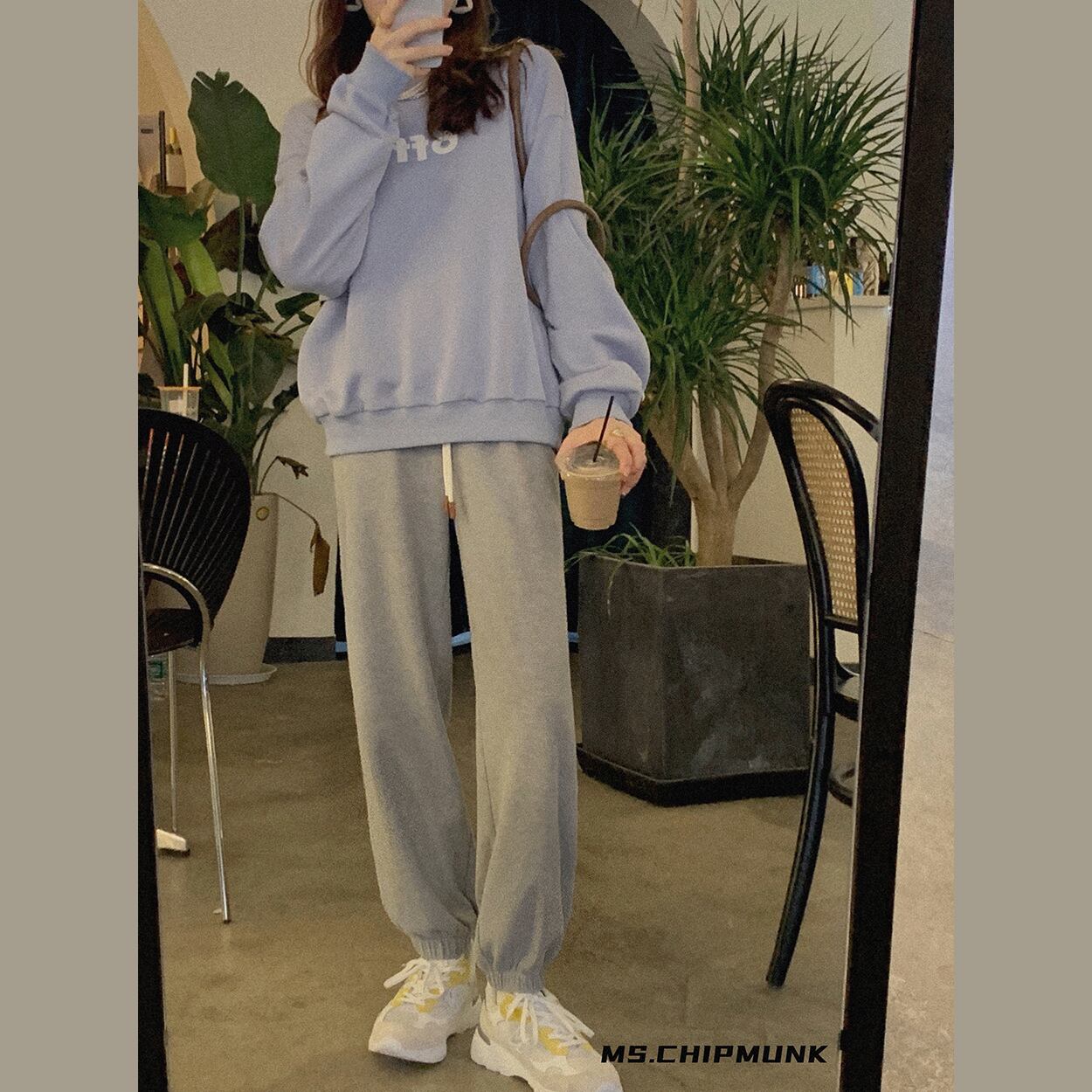 ミスシマリス[ワッフルスウェットパンツ]-ウエストストレートレッグスラックス初秋のスポーツパンツは薄手のパンツでした missi57397697154