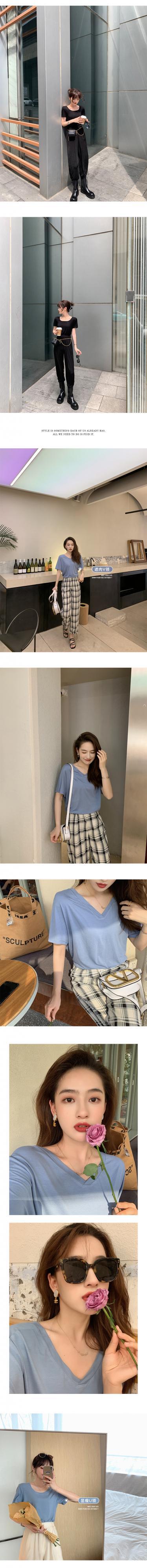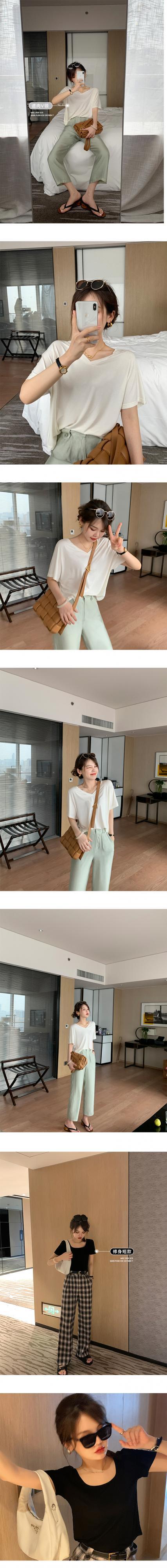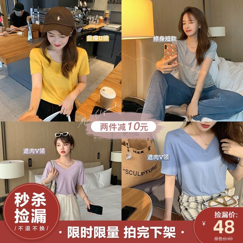 ミスシマリス半袖2020新しい女性の夏の無地の氷酸素TシャツルーズVネックデザイントップ missi48374116114