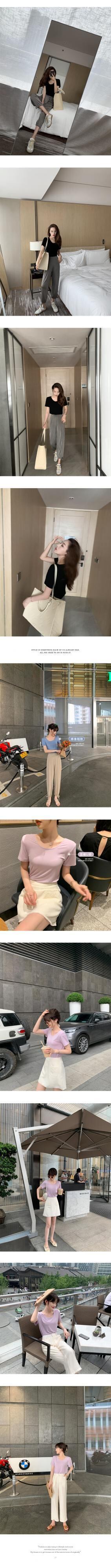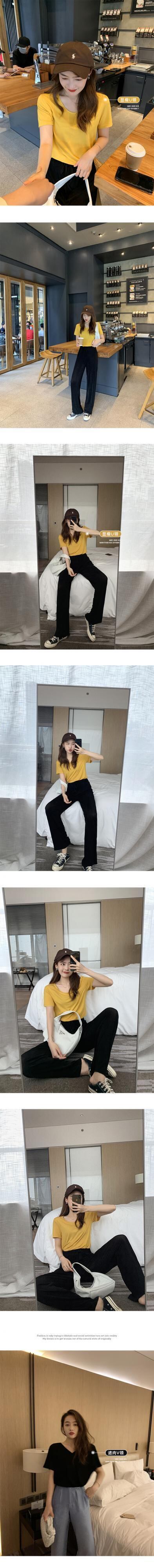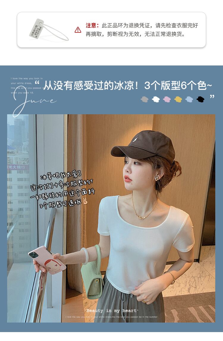 ミスシマリス半袖2020新しい女性の夏の無地の氷酸素TシャツルーズVネックデザイントップ missi48374116114