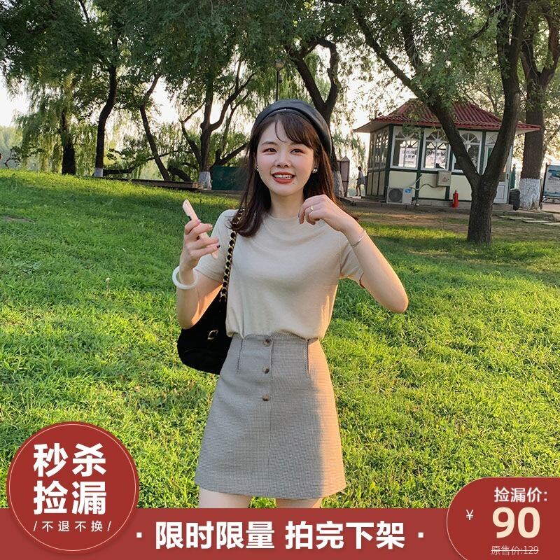 ミスシマリスAラインスカート2020夏新作ハイウエストシンオールマッチバッグヒップスカートワンステップスカート missi84642235999