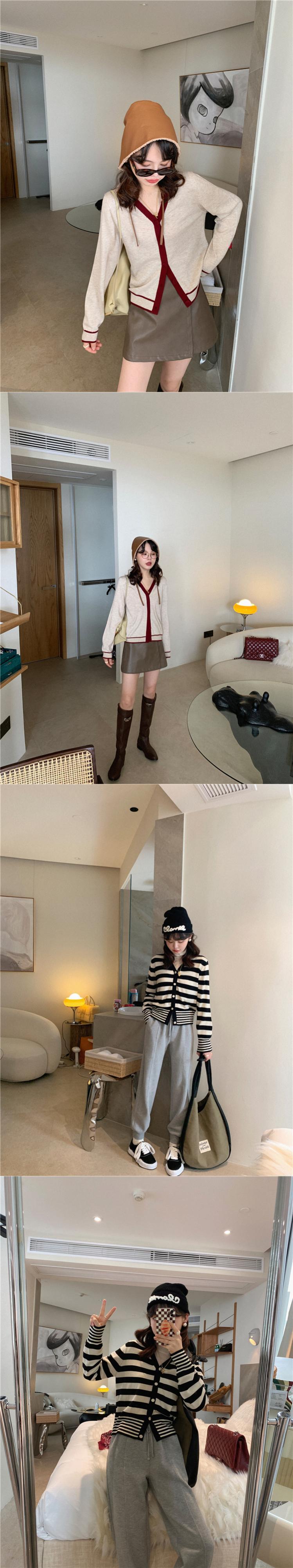 ミスシマリス【カーディガンバトル】黒と白のストライプニットカーディガンジャケットレディースアウターセータースモールセーター missi29579100341