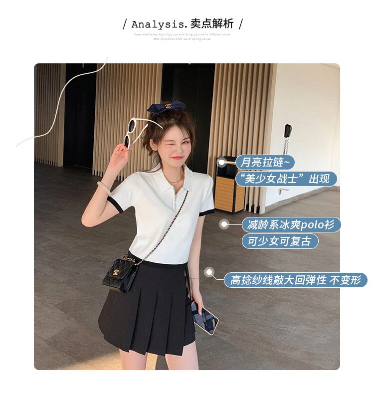 ミスシマリスポロセーター年齢削減半袖レディースサマードレス2020新しいTシャツレディースショートハイウエストトップス missi57131703271