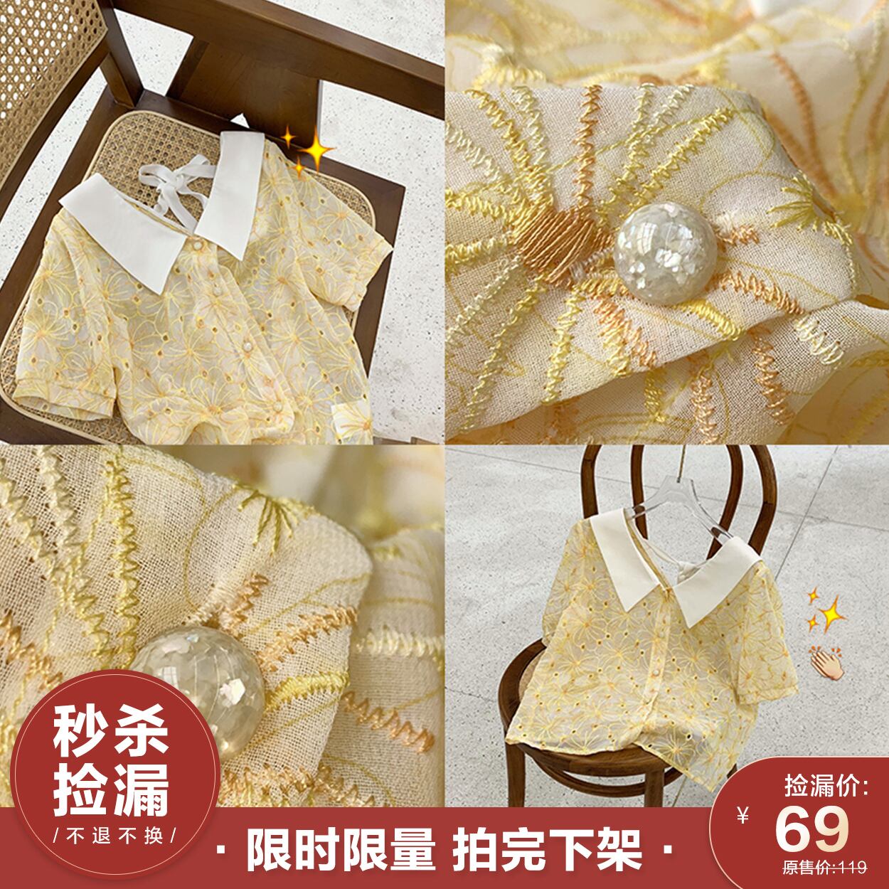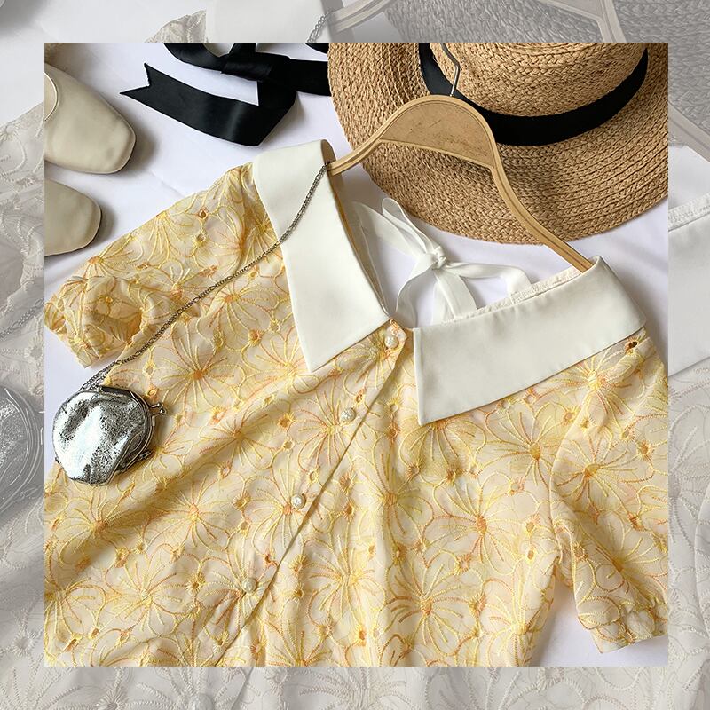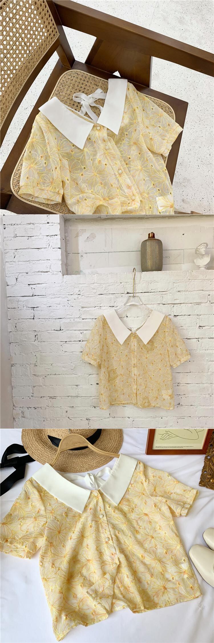 ミスシマリス刺繡レースラペルスモールシャツ missi90422009764