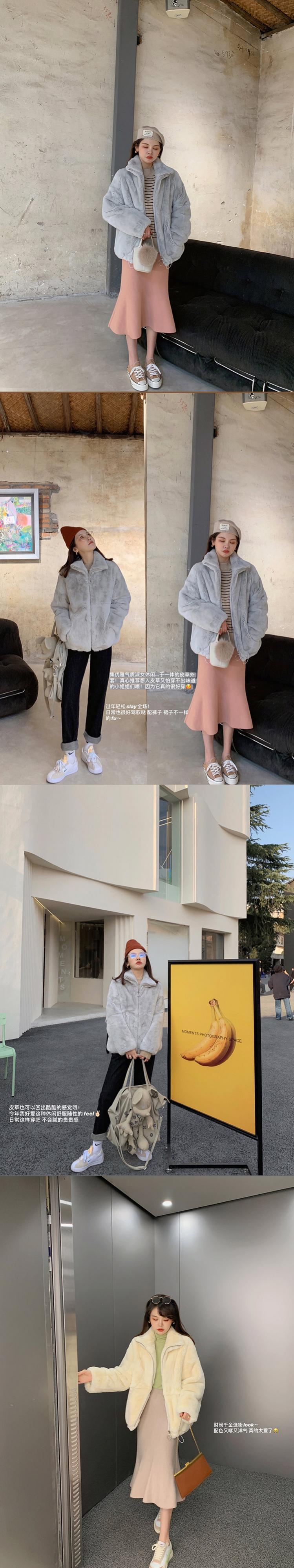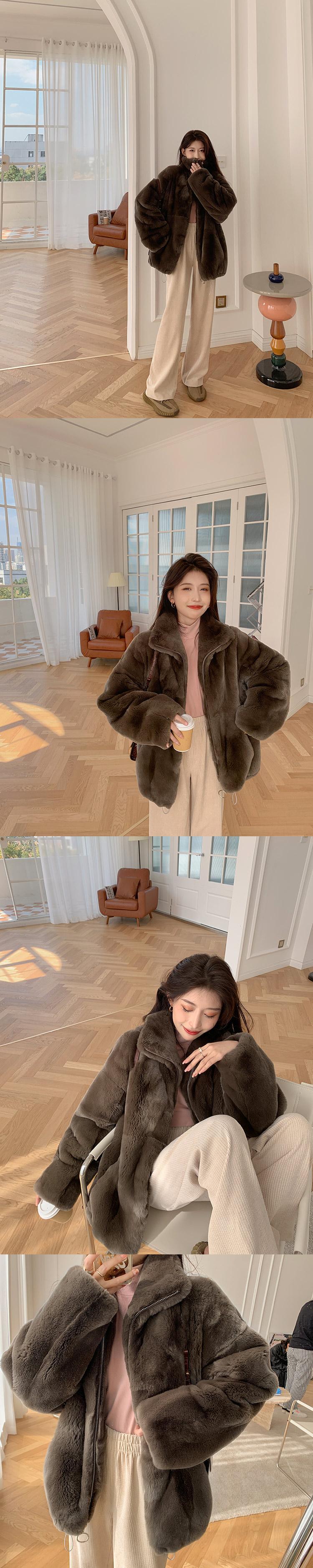ミスチップマンク[リトルウォームラビットファージャケット] 2020レックスラビットファー秋冬キャットショートジャケット missi64814758385