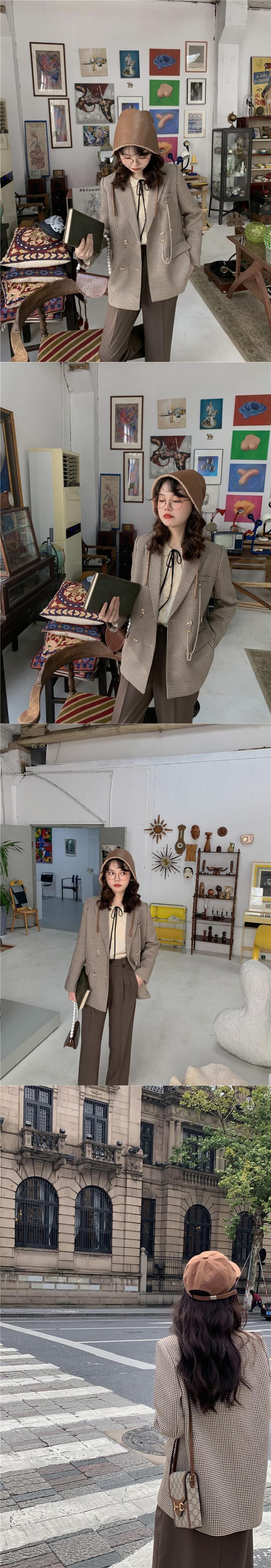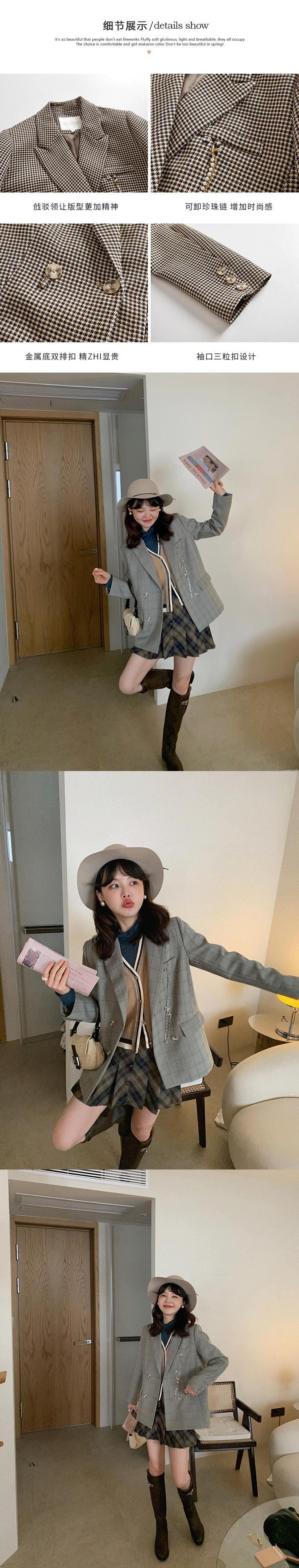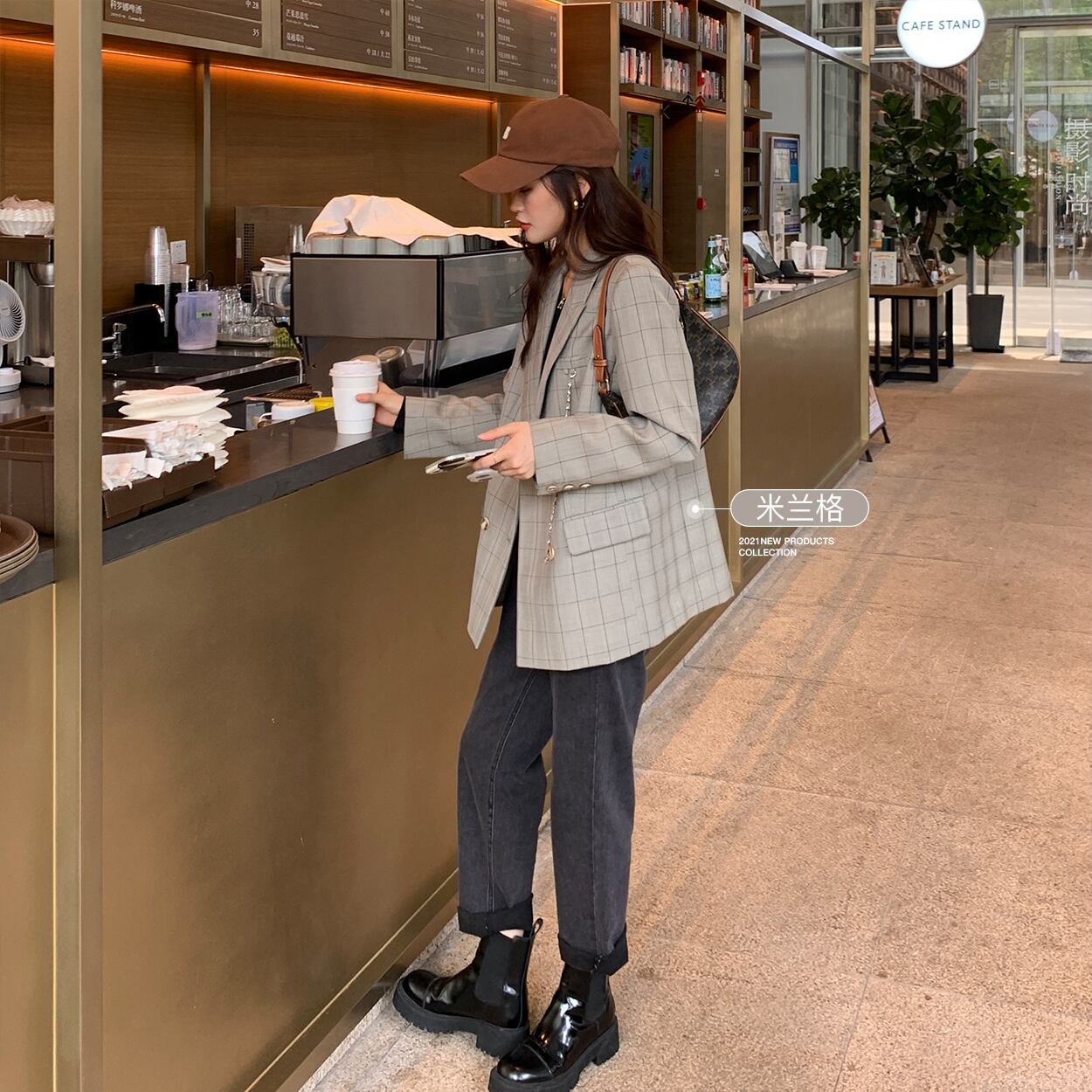 ミスシマリス【ブルックリンスーツ】チェック柄スモールスーツジャケットレディース春秋スモール気質スーツ missi28892215152