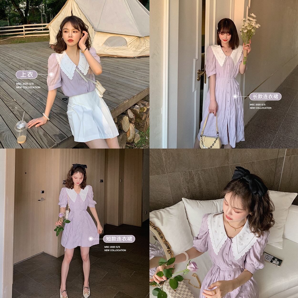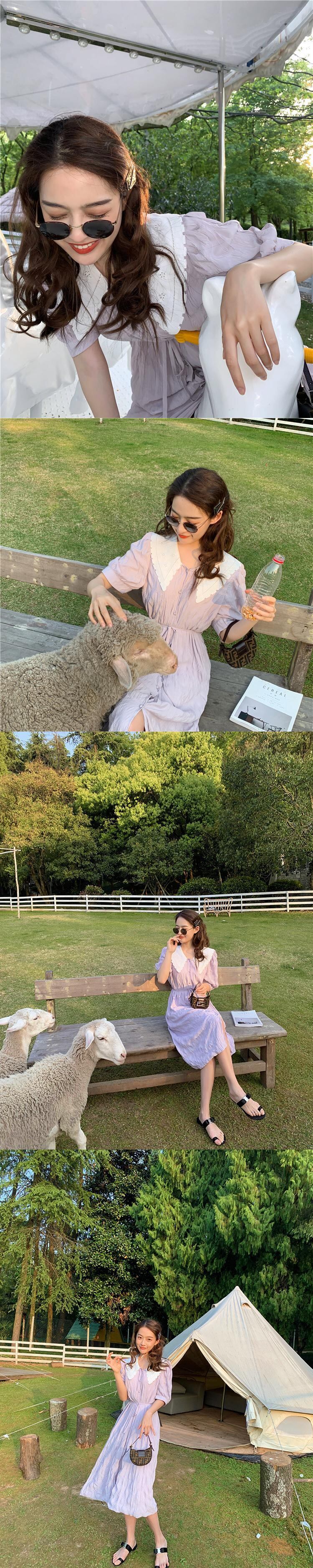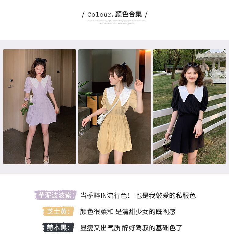 ミスシマリス人形の襟紫ヘップバーンスタイルウエストフレンチドレス女性2020年夏新しいデートスカート missi84125063499