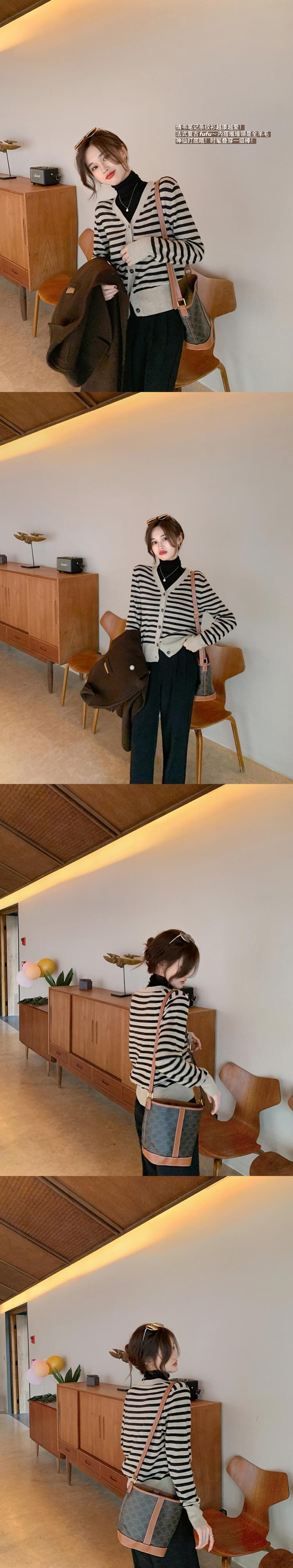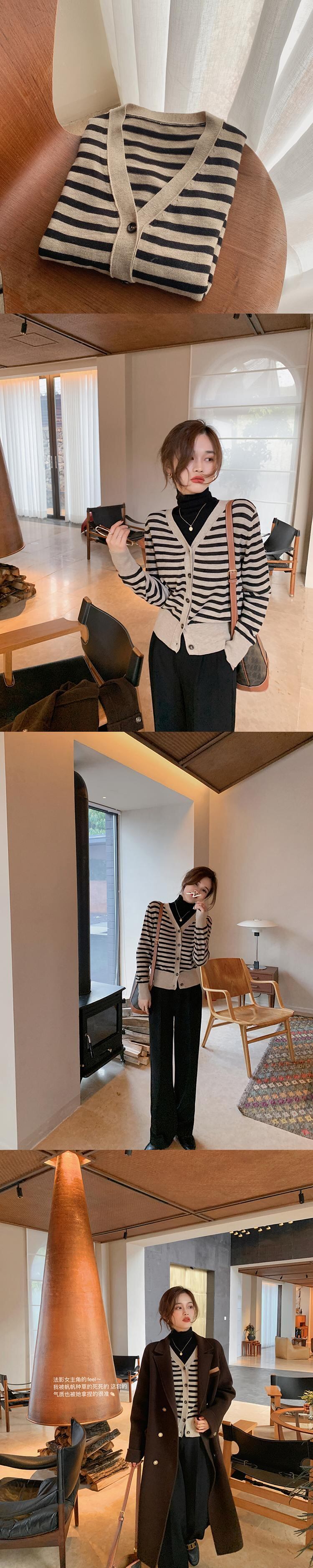 ミスシマリス[ラブレターノート]ストライプニットカーディガンレディース秋冬スモールトップス2020 missi51277308071