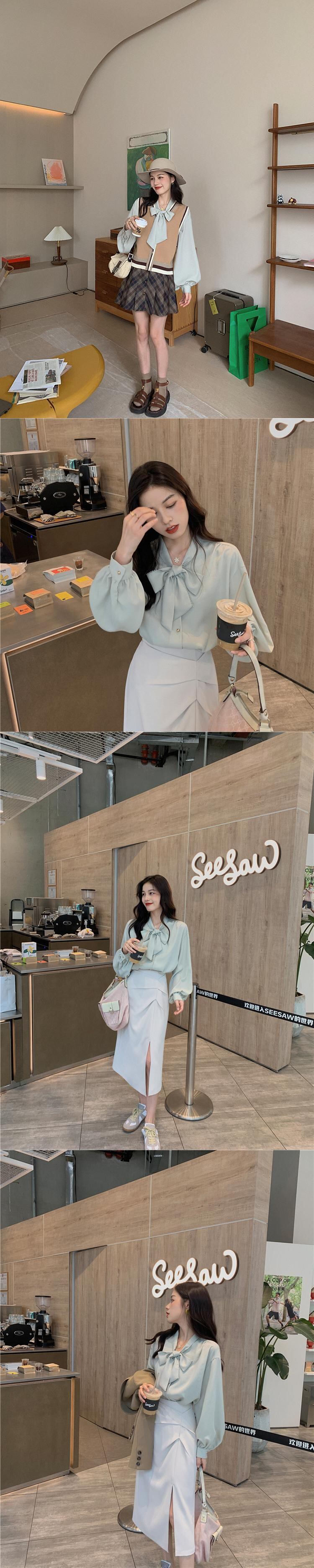 ミスシマリス【マンチェスターシャツ】フレンチエレガント秋シックブラウス女性デザインセンスニッチシャツアプリコット missi28240311239