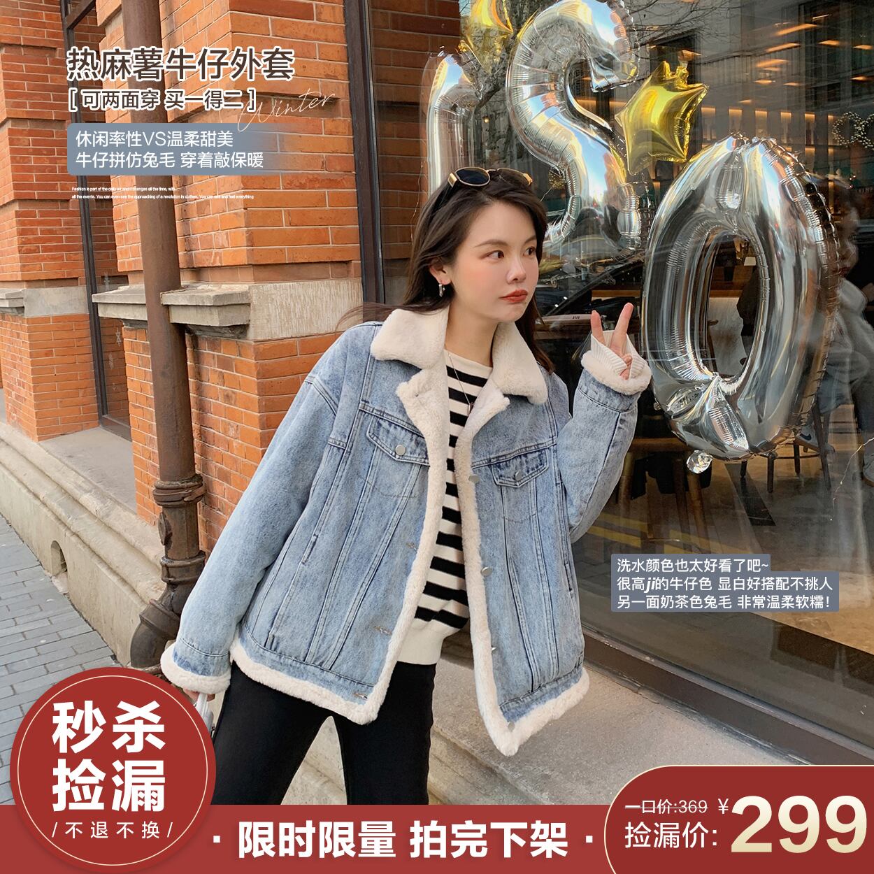 ミスチップマンクスモールデニムジャケットメス2021年初春秋新作両面着ショートスタイルワイルドフライストリート missi69265712254