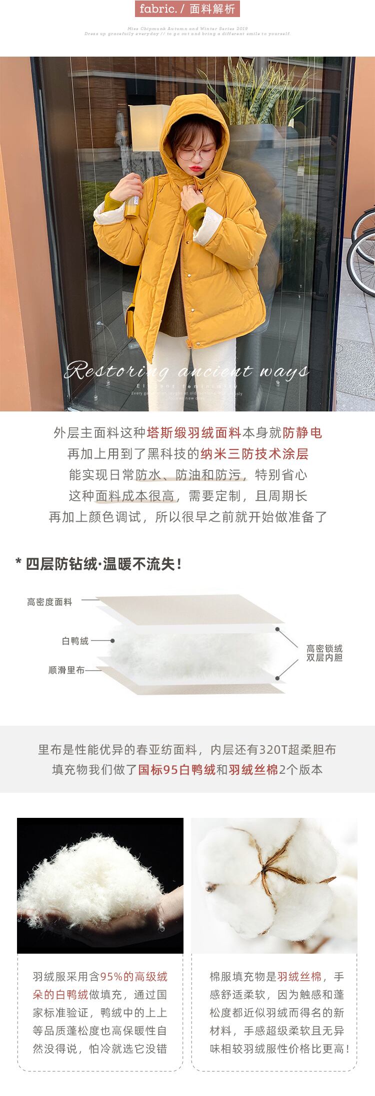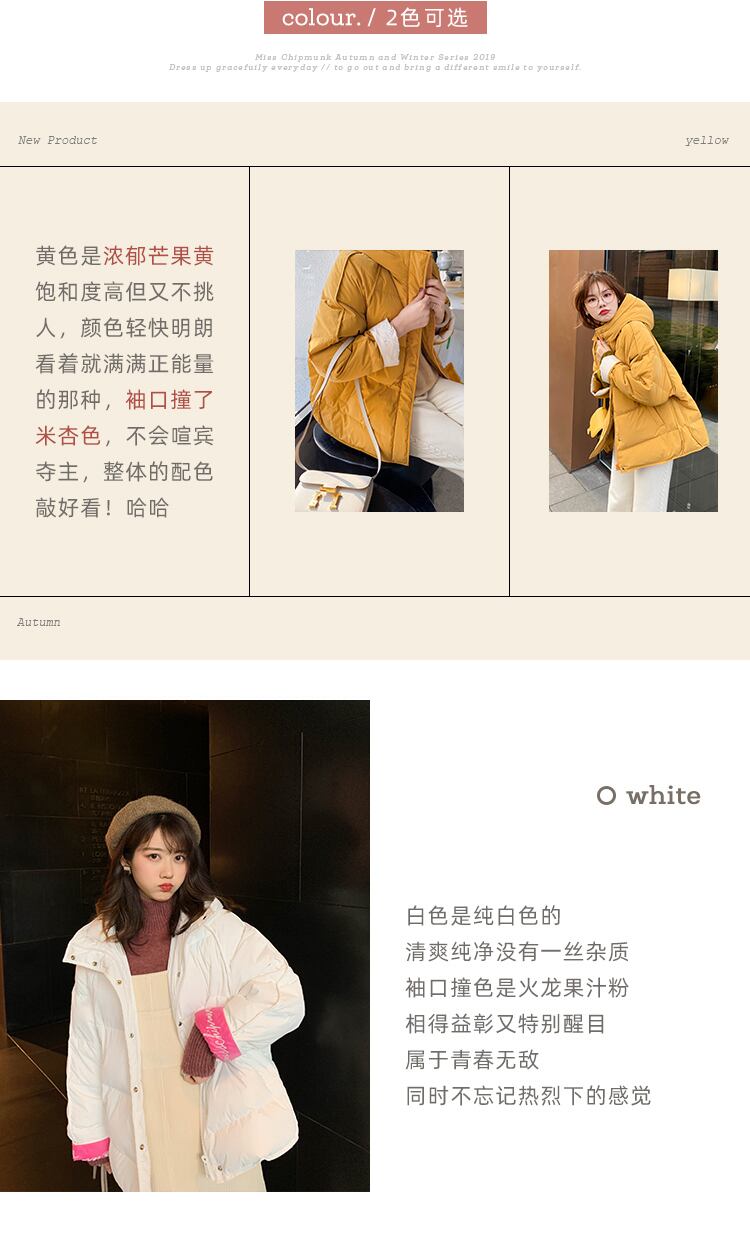 色:ダウンジャケットクリームホワイト,ダウンジャケットマンゴーイエロー,綿の服クリームホワイト,綿服マンゴーイエロー